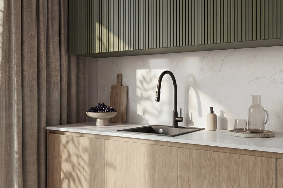 Seria Nila obejmuje modele z elastyczną wylewką oraz warianty z 2-funkcyjną wylewką, oferujące dwa strumienie wody. Dzięki temu baterie jeszcze lepiej odpowiadają na potrzeby współczesnej kuchni, ułatwiając płukanie warzyw, mycie naczyń, napełnianie wysokich naczyń i utrzymanie zlewu w czystości. Elastyczna wylewka zwiększa swobodę pracy przy zlewie i realnie podnosi komfort codziennego użytkowania.