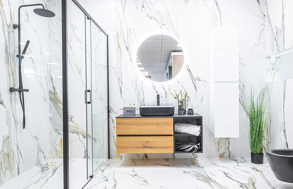 Die Badezimmermöbel sollten aus Materialien gefertigt sein, die für die Badezimmer bestimmt und mit funktionalen Schränken und Schubladen ausgestattet sind. In der Phase der Einrichtung oder Modernisierung sollte man sich gut überlegen, welche Funktion der Raum übernehmen wird, und entsprechend eine solche Menge an Möbeln auswählen, die eine freie Fortbewegung darin erlauben und die Möglichkeit bieten wird, alles, was nicht draußen stehen soll, zu verstauen. Je weniger verstellt das Badezimmer nach der Möblierung wirkt, desto besser. Daher könnten auch Möbel zum Aufhängen eine ideale Lösung sein. In den schwer erreichbaren Winkeln eines mit Möbeln verstellten Bades sammelt sich gerne Staub an und entsteht Schimmel, und das Aufräumen solcher Stellen ist schwer. Insbesondere, wenn man von Zeit zu Zeit dort reinschauen muss.