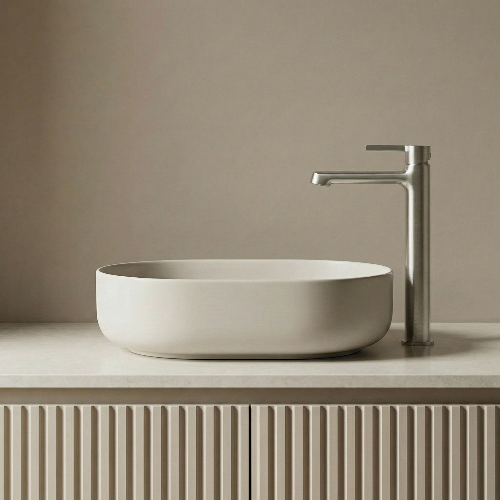 Ergänzt wird die Serie durch Wannenarmaturen mit Duschset sowie Duscharmaturen mit zweifunktionaler Handbrause. Beide Varianten verfügen über ein Anti-Twist-System für den Duschschlauch, während die Wannenarmatur zusätzlich mit einem keramischen Funktionsumschalter ausgestattet ist – für Langlebigkeit und Komfort. Die Oberfläche in gebürstetem Nickel lässt sich besonders leicht sauber halten. Bei den Waschtischarmaturen ist ein farblich passender Click-Clack-Ablauf im Lieferumfang enthalten, was das harmonische Design der Serie unterstreicht.
