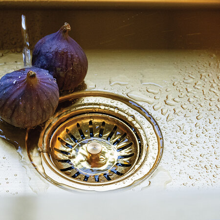 Um den modernen Charakter der Marmara-Kollektion zu unterstreichen, haben wir ungewöhnliche Ausführungen vorgesehen. Für traditionelle und minimalistische Küchen sind Inox-Spülbecken ideal, die gut zu verchromten Armaturen und Haushaltsgeräten in der gleichen Ausführung passen. In einem industriellen Interieur bewährt sich die graphitfarbene Marmara; sie verleiht der Küche Eleganz und passt zu den schwarzen Armaturen, die in den letzten Jahren in Mode sind. Diejenigen, denen an einem spektakuläreren Effekt gelegen ist, werden ihren Geschmack sicherlich an den goldenen und kupfernen Spülen finden. Jedes Marmara-Spülbecken wird komplett mit einem Siphon und einem manuellen Stöpsel in einer Farbe geliefert, die der Ausführung der Spüle entspricht.