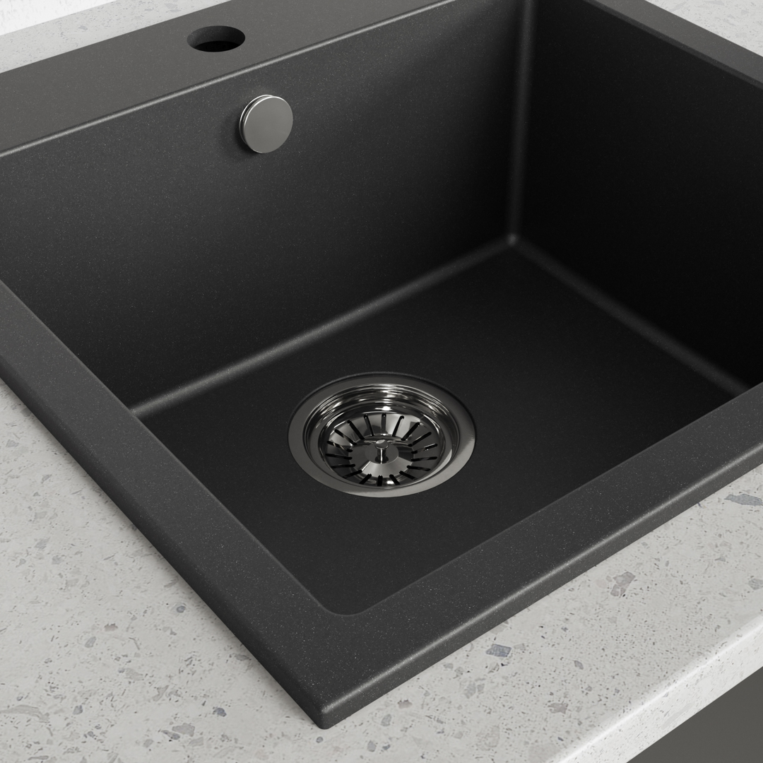 ALENA ist eine Granitspüle, die für kleine Küchenräume bestimmt ist. Die schlichte Form bewirkt, dass die Spüle universell ist und in Verbindung mit entsprechender Armatur perfekt zu jedem Innenraum passt. Die kompakte, aber tiefe 20 cm Kammer bewirkt, dass die Spüle sehr funktional ist. Das Modell ist mit einem automatischen Stöpsel und einem Siphon Space Saving, der für Platzeinsparung im Schrank sorgt, ausgestattet, was die Organisation des Raums für die Mülltrennung erlaubt. Im Set befindt sich auch ein Klick-Klack-Stöpsel. Die Eienschaften des Materials, aus welchem die Spüle gefertigt wurde, garantieren Beständigkeit gegen Verschmutzungen, Kratzer, thermischen Schock und hohe Temperatur. Die Spüle wurde durch Maria Kubiak entworfen und in einer polnischen Fabrik hergestellt.