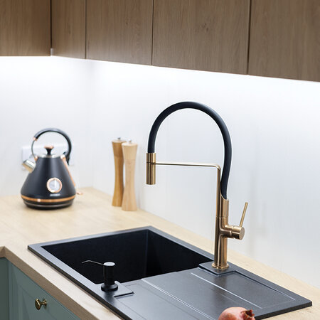 Die schlichte und markante Spülen-Serie Barbados verfügt über vier unterschiedliche Modelle. Die größte Abmessung der Spüle beträgt 48x100 cm, das ist eine 1,5-Kammer-Spüle mit Ablaufplatte, und ein weiterer Vorschlag ist ein Zwei-Kammer-Modell, eine 1-Kammer-Spüle mit einer halben Ablaufplatte, und die letzte Spüle mit den kleinsten Abmessungen in der Kollektion ist die 1-Kammer-Spüle mit Ablaufplatte (44X46 cm), die im Set mit der Küchenarmatur auftritt, die farblich passend zur Spüle gewählt wurde. Die Serie Barbados ist in drei Ausführungen erhältlich: Beige, Grau und Schwarz. Es lont sich, zu erwähnen, dass Sie dank dem Siphon Space Saving, mit dem das Spülbecken ausgestattet ist, Platz im Schrank sparen können. Dank dem automatischen Stöpsel, werden Sie ganz leicht den Abfluss schließen oder öffnen. Durch die Reversibilität eines jeden der Modelle können Sie das Spülbecken mit der Ablaufplatte sowohl links als auch rechts montieren. Die Spülen von Laveo zeichnen sich durch Festigkeit aus und sind leicht sauber zu halten. Die Kollektion Barbados wurde durch Maria Kubiak entworfen und wird in der heimatlichen Fabrik hergestellt.