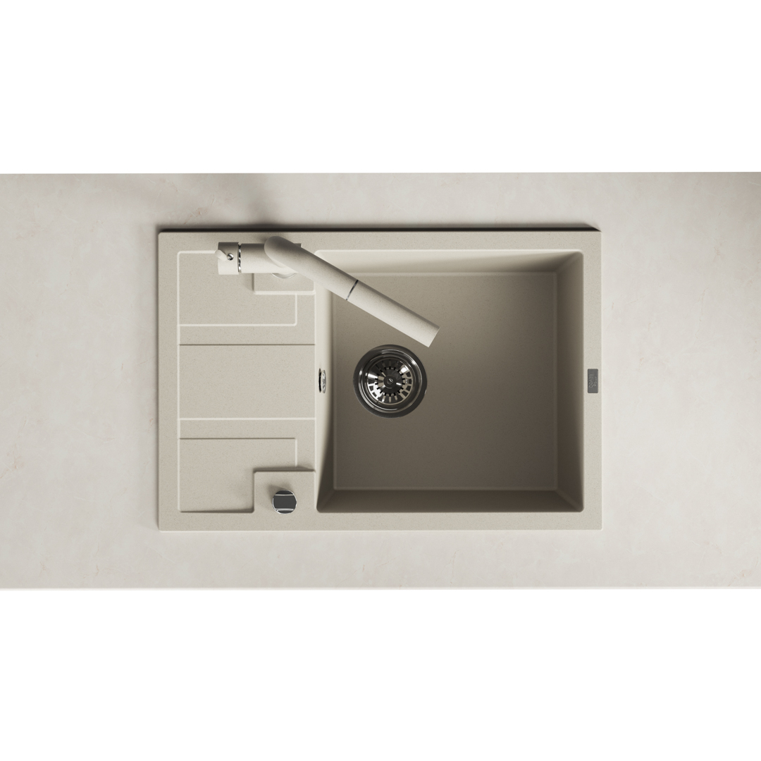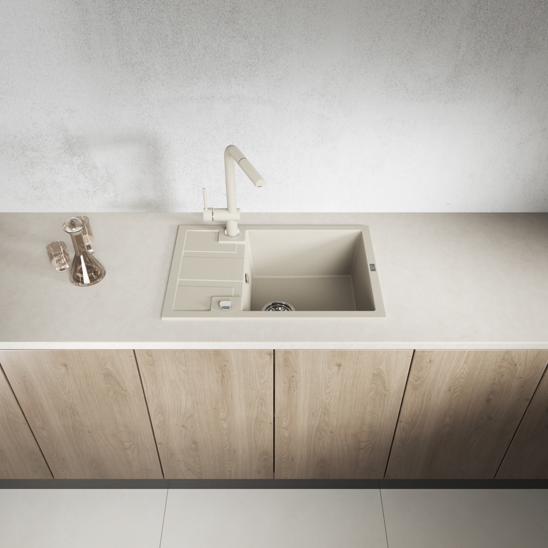 Die schlichte und markante Spülen-Serie Barbados verfügt über vier unterschiedliche Modelle. Die größte Abmessung der Spüle beträgt 48x100 cm, das ist eine 1,5-Kammer-Spüle mit Ablaufplatte, und ein weiterer Vorschlag ist ein Zwei-Kammer-Modell, eine 1-Kammer-Spüle mit einer halben Ablaufplatte, und die letzte Spüle mit den kleinsten Abmessungen in der Kollektion ist die 1-Kammer-Spüle mit Ablaufplatte (44X46 cm), die im Set mit der Küchenarmatur auftritt, die farblich passend zur Spüle gewählt wurde. Die Serie Barbados ist in drei Ausführungen erhältlich: Beige, Grau und Schwarz. Es lont sich, zu erwähnen, dass Sie dank dem Siphon Space Saving, mit dem das Spülbecken ausgestattet ist, Platz im Schrank sparen können. Dank dem automatischen Stöpsel, werden Sie ganz leicht den Abfluss schließen oder öffnen. Durch die Reversibilität eines jeden der Modelle können Sie das Spülbecken mit der Ablaufplatte sowohl links als auch rechts montieren. Die Spülen von Laveo zeichnen sich durch Festigkeit aus und sind leicht sauber zu halten. Die Kollektion Barbados wurde durch Maria Kubiak entworfen und wird in der heimatlichen Fabrik hergestellt.
