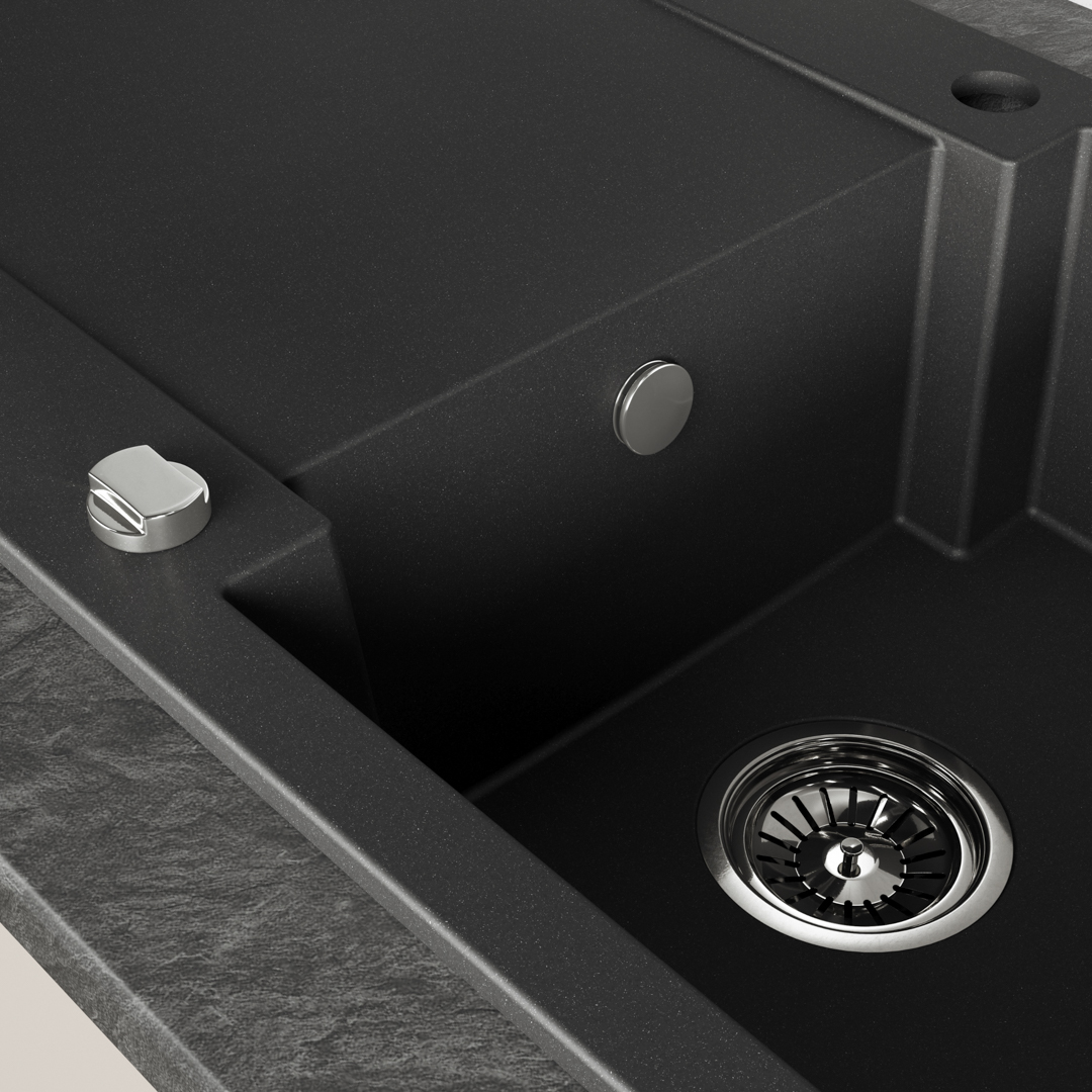 Jedes Modell der Serie Chichi ist mit einem Space-Saving-Siphon ausgestattet, der eine bequeme Aufbewahrung unter der Spüle ermöglicht und ideal für einen Mülleimer oder Reinigungsmittel ist. Die Spülen sind in drei eleganten Farben erhältlich – in Beige, Grau und Schwarz – und lassen sich so leicht in eine Vielzahl von Einrichtungen integrieren. Die Produkte der Serie werden mit einer 10-jährigen Garantie und einem Anfahrtsservice geliefert, die eine dauerhafte Qualität und einen hohen Komfort garantieren. Die Spülbecken Chichi sind resistent gegen Temperaturschocks, hohe Temperaturen, Schmutz und Stöße, und jedes Modell ist mit einem Klick-Klack-Stopfen und einem Sieb mit einem Durchmesser von 3,5 Zoll ausgestattet, um den Abfluss vor Speiseresten zu schützen.