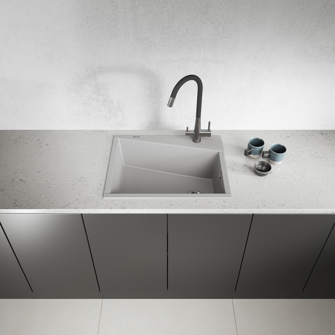 Das geometrische Design und Ergonomie - sind die wichtigsten Eigenschaften der durch Maria Kubiak entworfenen Serie Grenada. Das Produkt zeichnet sich durch eine geräumige Kammer aus. Die Größe der Spüle erleichtert die tägliche Arbeit in einem Haus, in dem viel gekocht wird. Die große Kammer des 1-Kammer-Modells oder die ideal glatte Ablaufplatte, die für ausezeichneten Wasserablauf sorgt, bietet idealen Raum für kulinarische Experimente, die nicht immer leicht sind. Das Ganze ergänzt ein im Set enthaltener Siphon Space Saving, der Platz im Schrank unter der Spüle spart, sowie der elegante Stöpsel. Gesteuert durch einen am Rand der Spüle montierten Knopf, hilft er beim Schließen und Öffnen des Abflusses des im Inneren der Kammer angesammelten Wassers. Die Spülen Grenada werden in einer polnischen Fabriknach dem Projekt von Maria Kubiak hergestellt.