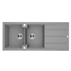 Die Serie umfasst ein zweikomponentiges Modell mit durchgehendem Abtropfbereich, das sorgfältig gestaltet wurde, um den Anforderungen moderner Küchen gerecht zu werden. Zwei großzügige, tiefe Becken bieten reichlich Platz für das gleichzeitige Spülen, Abspülen oder Sortieren von Geschirr. Diese Lösung ist besonders in Familienküchen und in solchen, in denen Kochen eine zentrale Rolle spielt, geschätzt. Der integrierte Abtropfbereich ist mit präzise ausgearbeiteten Rillen versehen, die das Wasser effizient ableiten und so für Sauberkeit und Hygiene auf der Arbeitsfläche sorgen.