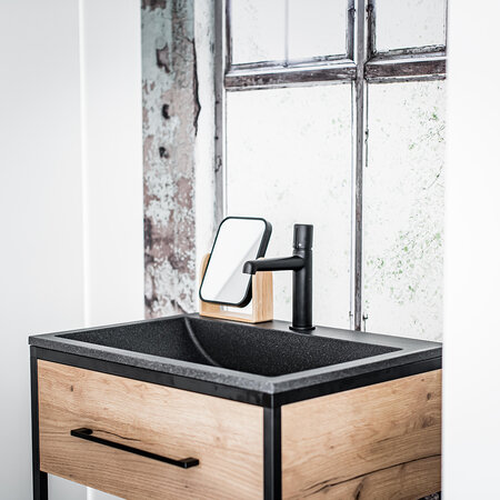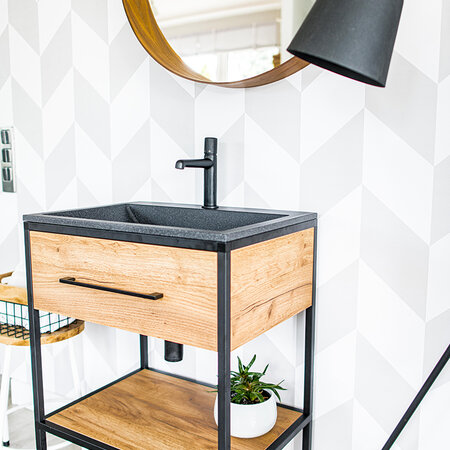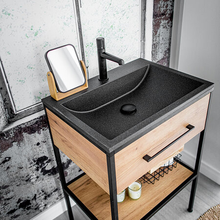 Das Granitwaschbecken Albano ist ein einzigartiges Modell. Das Material, aus dem das Produkt ausgeführt ist, wird eine jahrelange problemlose Benutzung sicherstellen. Der Granit, aus dem das Waschbecken gefertigt ist, zeichnet sich durch eine hohe Abriebbeständigkeit, Beständigkeit gegen hohe Temperaturen und chemische Substanzen aus. Das in die Platte eingelassene Waschbecken mit Abmessungen 44x60cm hat eine geräumige Schale mit sanft profilierten Kanten und eine vorgefertigte Öffnung für die Montage der Waschbecken-Armatur. Zu den beiden Seiten des Waschbeckens befinden sich praktische Ränder, an denen man eine Seifenablage oder andere Kosmetikprodukte abstellen kann. Das interessante Design des Waschbeckens wird sogar die anspruchsvollsten Geschmäcker der Kunden befriedigen. Polnisches Produkt.