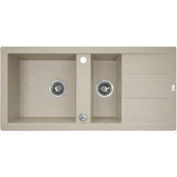 Simple and expressive - that is what the Barbados series of sinks is like. The series consists of 4 models. The 1,5-bowl sink with a drainer, whose dimensions are 48x100 cm, is the largest proposal that can be found among the series. There is also a 2-bowl sink, 1-bowl with a halfdrainer and a 1-bowl model with a drainer (44x76 cm), which is the smallest product offered by the collection. The latter is also available in a set with a kitchen faucet that has been color-coordinated to match the finish of the sink. The Barbados series is available in three colors: beige, gray, and black. While choosing one of the three models, it is worth noticing that thanks to the Space Saving drain trap, we will save space in the cabinet under the sink. Moreover, due to the automatic pop-up waste plug, we are able to easily close or open the outflow, while the reversibility of each model enables the installation of the sink with a drainer both on the left and right sides.