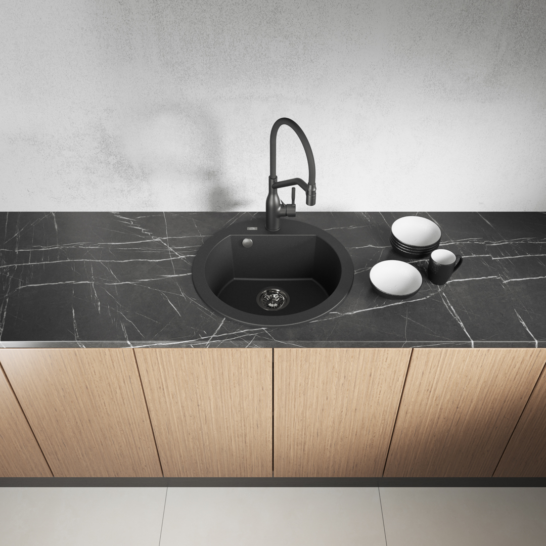 Aesthetic and round, this is what the Dafne sinks are like. If we have a Boho-style kitchen or we want to introduce a bit of lightness, instead of a rectangular or square sink we can put on round shapes. We can distinguish several models: a 1-bowl in two models, 1-bowl with a short drainer, 1-bowl with a drainer, and a 2-bowl one. Their shape and size will allow you to choose the right model when arranging the kitchen, while the deep bowl (19 cm) occurring in each mode will enable trouble-free dishwashing. The least space will be taken up by round models, without a drainer. These are usually comfortable sinks, which look nice against the background of the kitchen countertop. Laveo sinks are of Polish quality, which means Polish production, in which we focus on adapting the products to the needs, thanks to their durability and ease of cleaning.