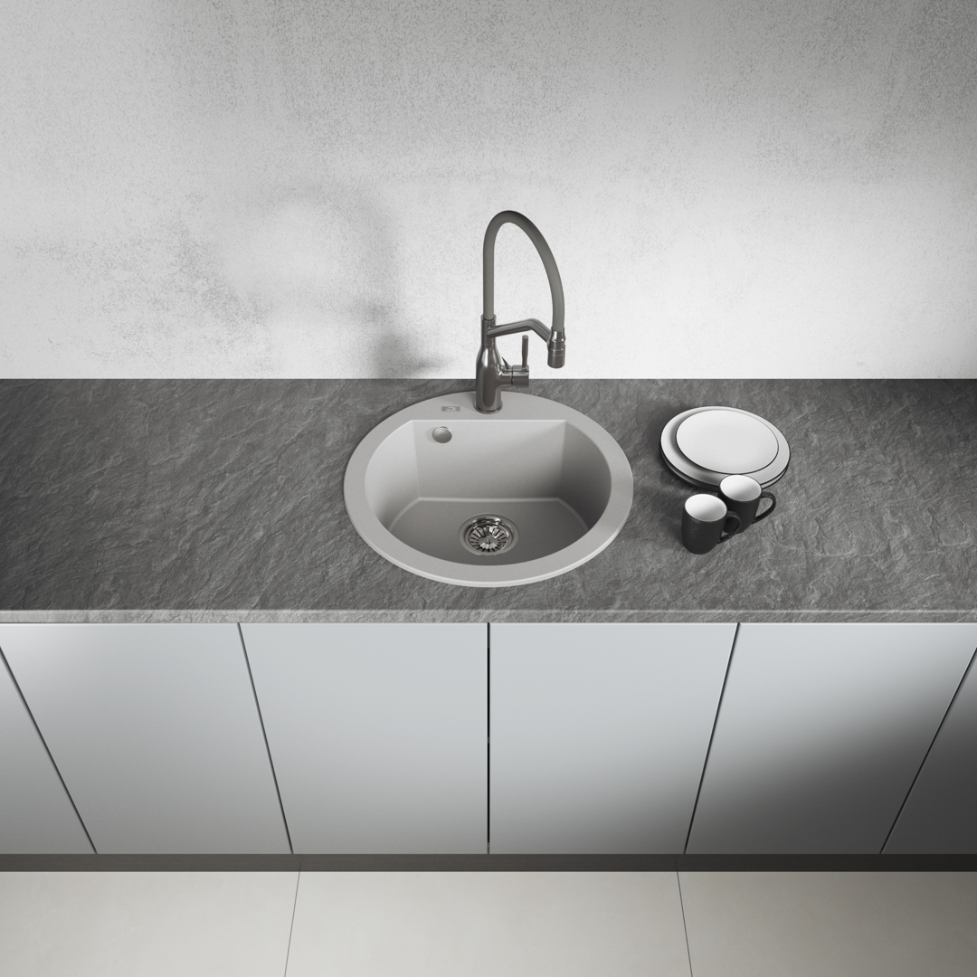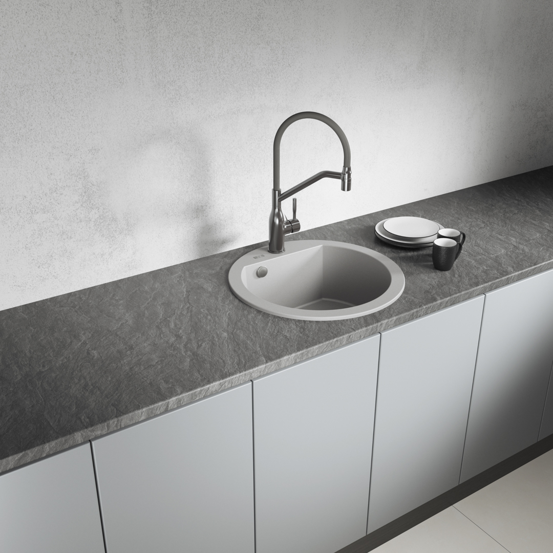 Aesthetic and round, this is what the Dafne sinks are like. If we have a Boho-style kitchen or we want to introduce a bit of lightness, instead of a rectangular or square sink we can put on round shapes. We can distinguish several models: a 1-bowl in two models, 1-bowl with a short drainer, 1-bowl with a drainer, and a 2-bowl one. Their shape and size will allow you to choose the right model when arranging the kitchen, while the deep bowl (19 cm) occurring in each mode will enable trouble-free dishwashing. The least space will be taken up by round models, without a drainer. These are usually comfortable sinks, which look nice against the background of the kitchen countertop. Laveo sinks are of Polish quality, which means Polish production, in which we focus on adapting the products to the needs, thanks to their durability and ease of cleaning.