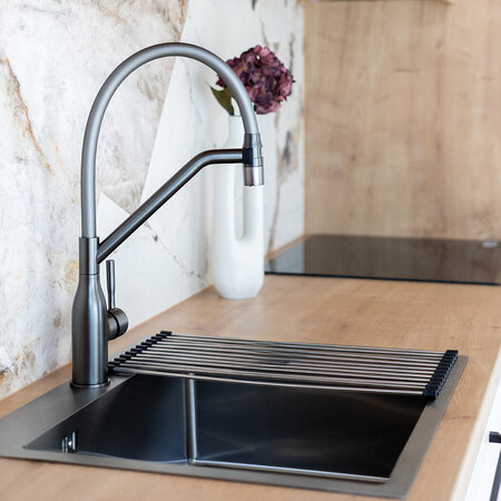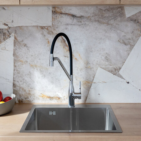 Colina faucets are available in three of the trendiest color variants, seamlessly fitting into various interior styles. The chrome and black combination is an elegant and timeless option for those who appreciate contrasting accents—shiny chrome adds freshness to the space, while matte black enhances the kitchen’s modern character. For those who favor classic modernity, a faucet in a uniform matte black finish is the perfect solution—minimalist, stylish, and an excellent match for loft, Scandinavian, and industrial interiors. Meanwhile, the graphite finish features a subtle metallic texture, bringing a touch of sophistication to the kitchen and harmonizing beautifully with concrete countertops, wooden surfaces, and matte cabinet fronts.