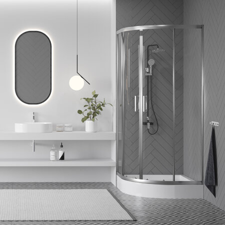 Desna is a series of shower cabins consisting of half-round cabin and square cabin, both in elegant chrome and black finish. Desna shower cabins stand out with a modern design, durable materials and functional solutions, ensuring comfort and convenience when taking a shower. When selecting Desna shower cabins it’s important to take into account the available bathroom space and individual aesthetic preferences. Half-round and square cabins offer various visual and ergonomic experiences, so it’s worth paying attention to these aspects when making your decision.