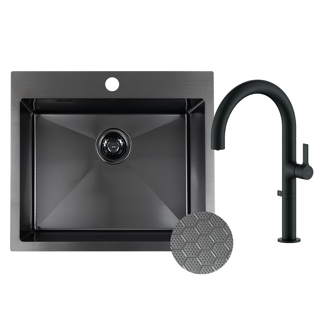 Malawi sinks are modern solutions designed for everyday comfort and elegance. Made of durable stainless steel, they are available in the following finishes: inox, graphite, gold, and deep black with a unique Honeycomb surface. Inspired by nature, the hexagonal honeycomb structure not only catches the eye but also effectively disguises minor scratches and makes cleaning easier. Combined with matte black, it creates a bold, contemporary accent in the kitchen space.