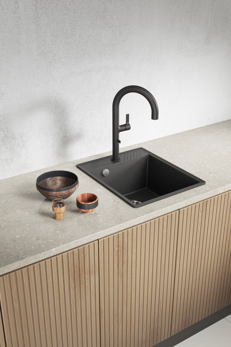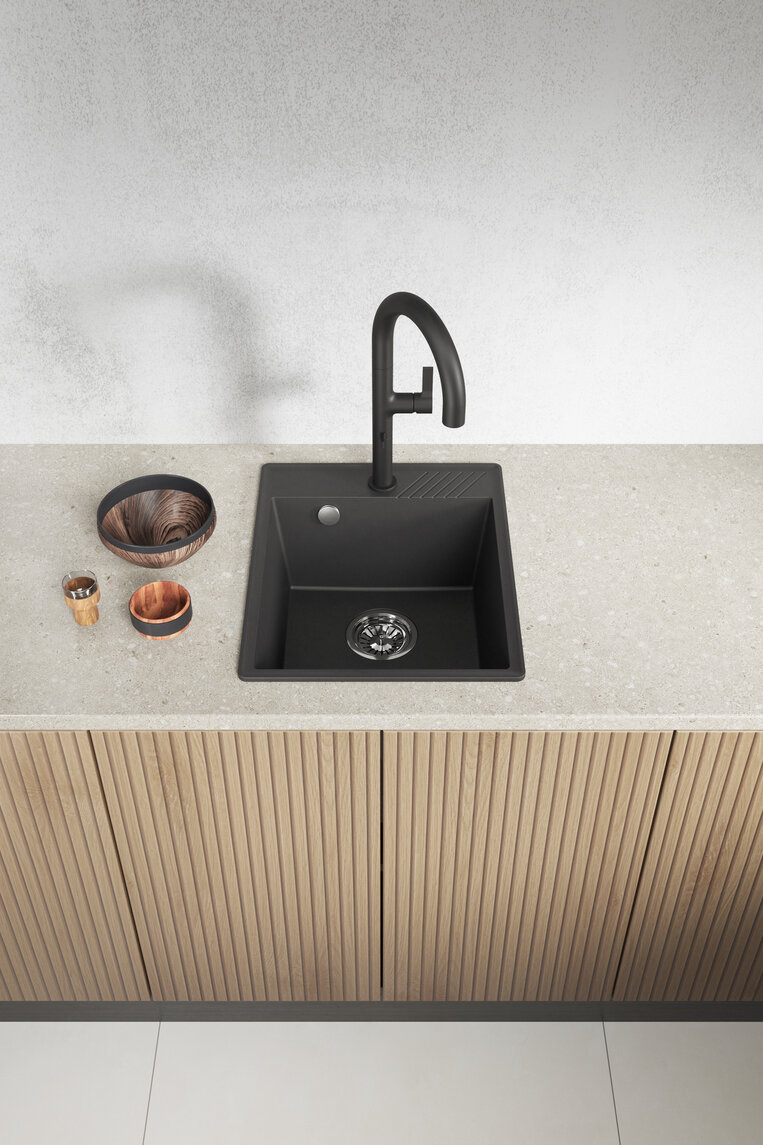 Hub - zlewozmywak czarny 1-komorowy