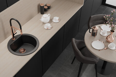 Czarna bateria kuchenna? Brzmi odważnie, ale… kto raz spróbuje, ten już nie wraca do klasyki. Matowe wykończenie Ality nie tylko wygląda zjawiskowo – pasuje do nowoczesnych kuchni, do stylu loft i skandynawskiego, a nawet do kuchni z duszą. I co ważne – łatwa w utrzymaniu czystości.