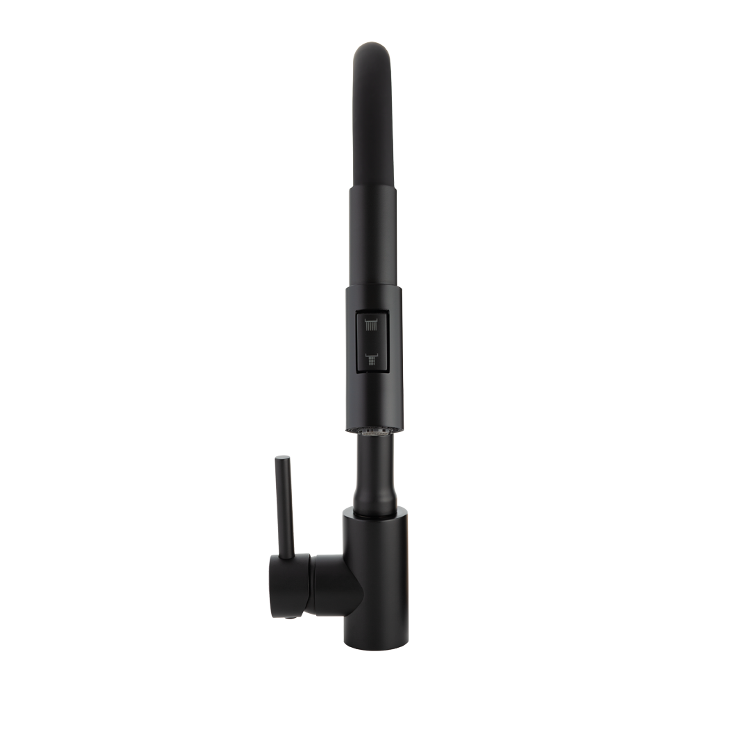 Bateria zlewozmywakowa Nila w czarnym wykończeniu to propozycja dla osób, które szukają wyposażenia o nowoczesnym charakterze i wysokiej funkcjonalności. Głęboka czerń nadaje jej elegancki, zdecydowany wygląd, dzięki czemu świetnie odnajduje się we wnętrzach minimalistycznych, loftowych i nowoczesnych. To model, który przyciąga uwagę estetyką, a jednocześnie został zaprojektowany z myślą o wygodzie codziennego użytkowania.