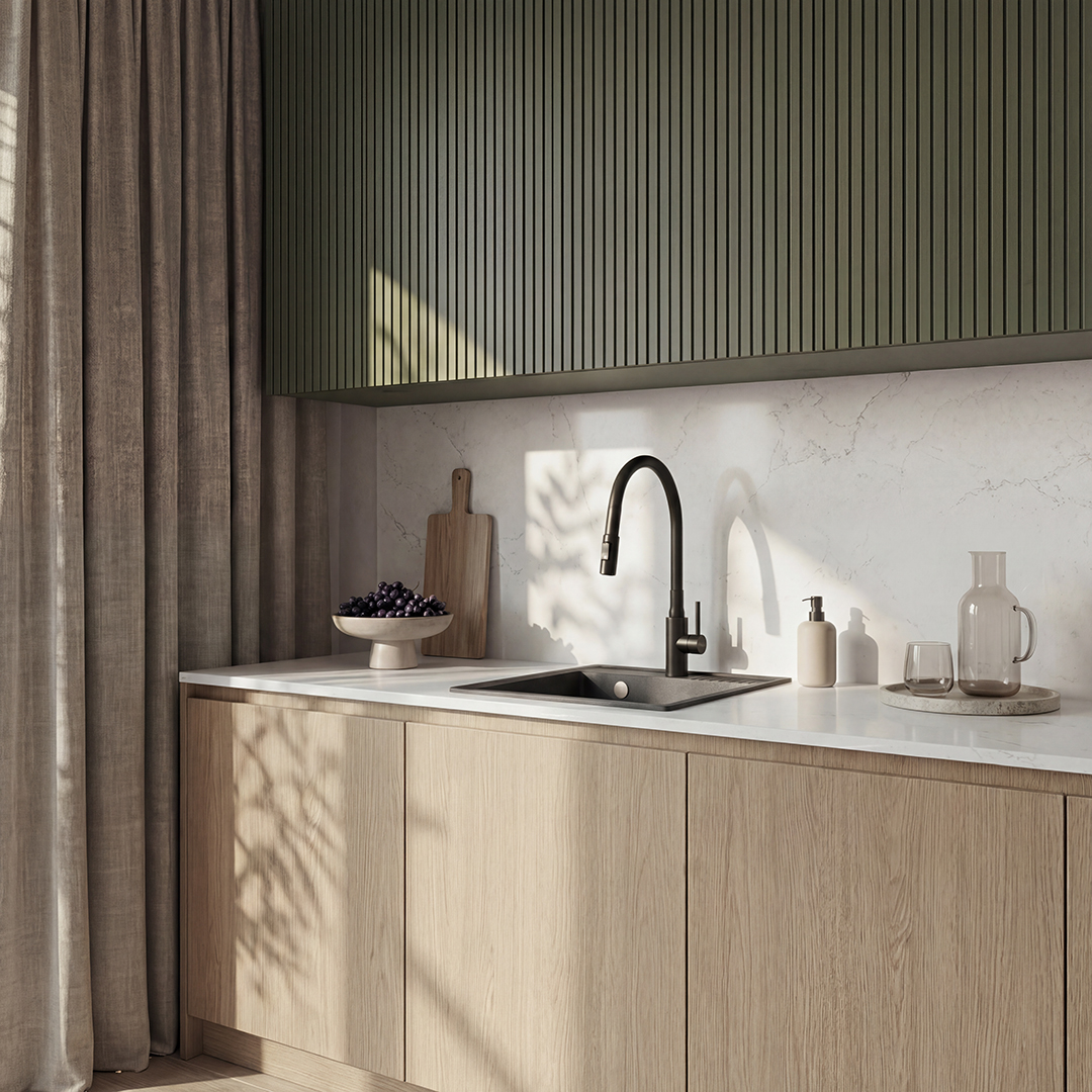 Zastosowany aerator Neoperl napowietrza wodę, dzięki czemu strumień pozostaje przyjemny w użyciu, a jej zużycie jest mniejsze. Bateria wspiera więc oszczędność wody, bez rezygnacji z komfortu. To praktyczne rozwiązanie dla osób, które chcą korzystać z kuchni wygodnie, ale bardziej świadomie.