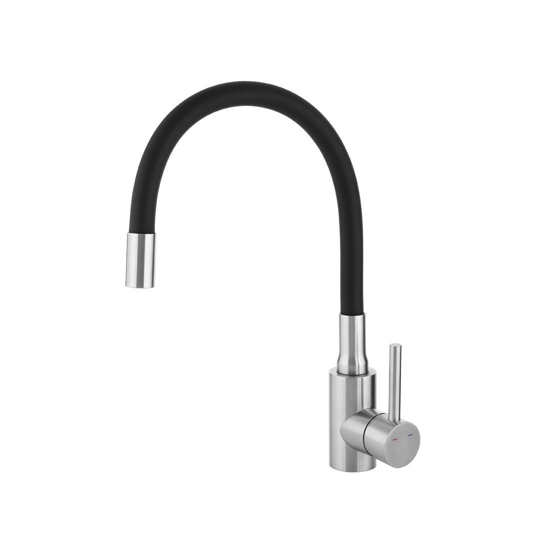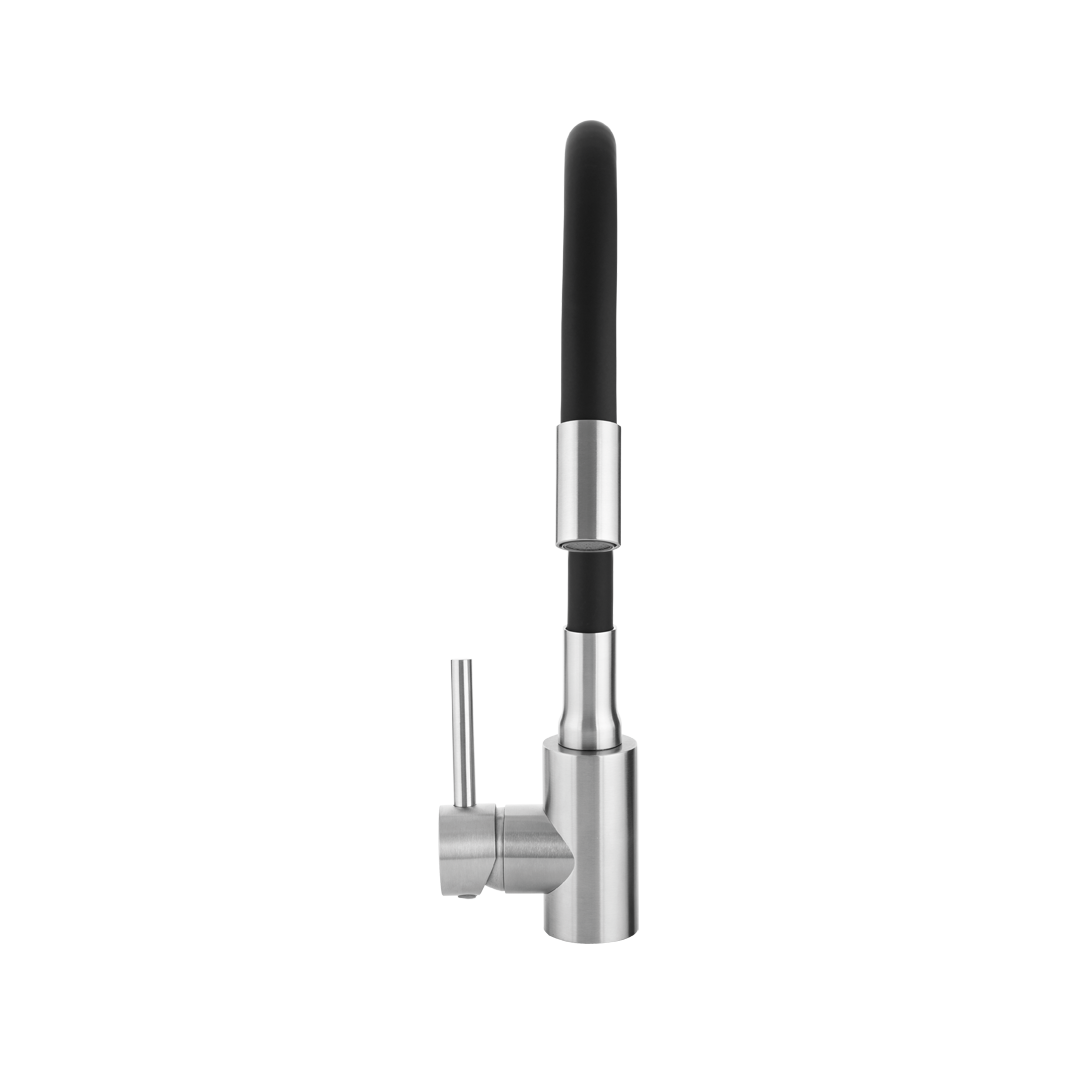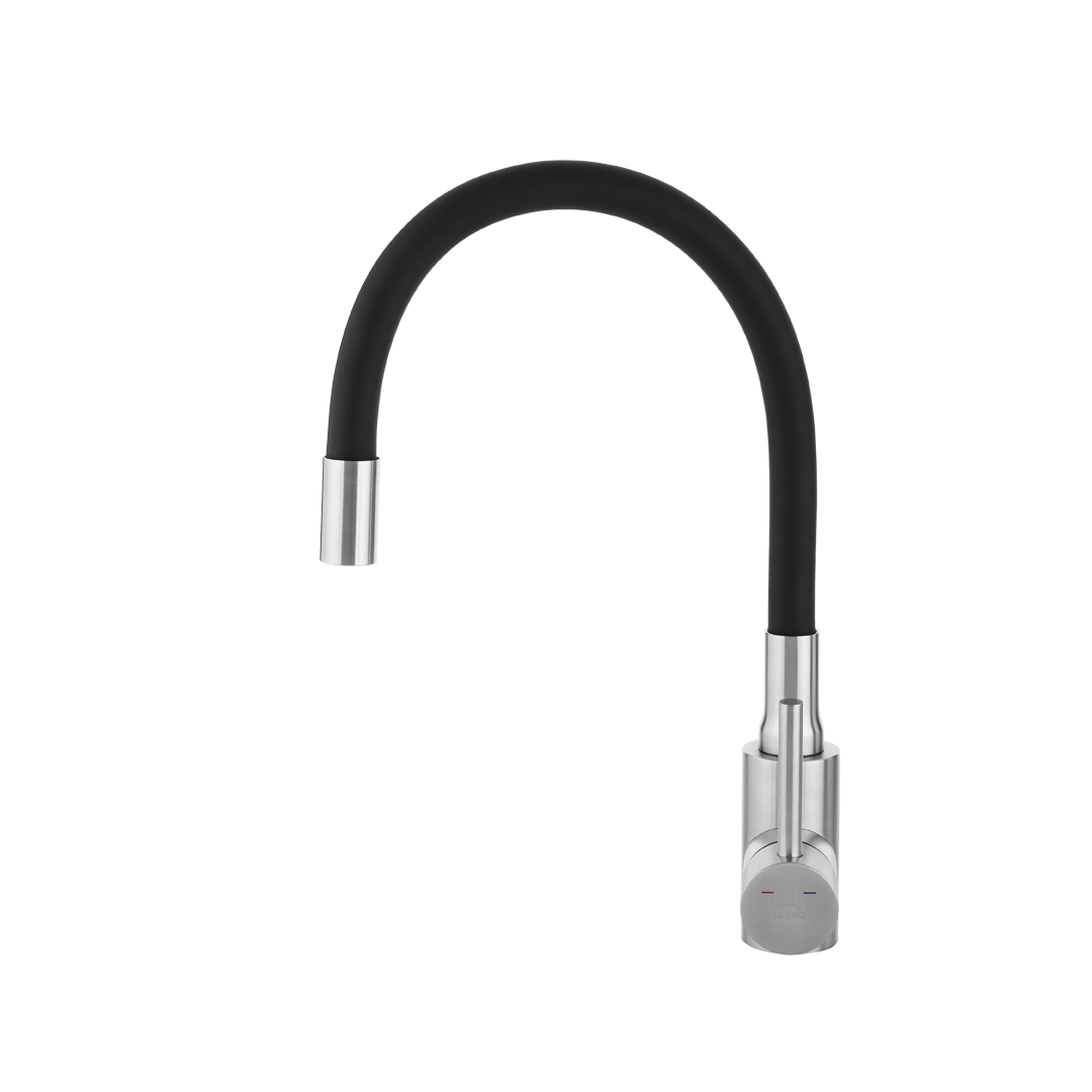 Bateria kuchenna Nila w wykończeniu stal szczotkowana z czarną wylewką to propozycja dla osób, które szukają połączenia nowoczesnego wzornictwa, trwałych materiałów i codziennej wygody. Zestawienie szczotkowanej stali nierdzewnej z czarną, elastyczną wylewką nadaje baterii elegancki i wyrazisty charakter, który doskonale wpisuje się w kuchnie nowoczesne, loftowe i minimalistyczne. To model, który porządkuje wizualnie strefę zmywania i podkreśla styl całego wnętrza.