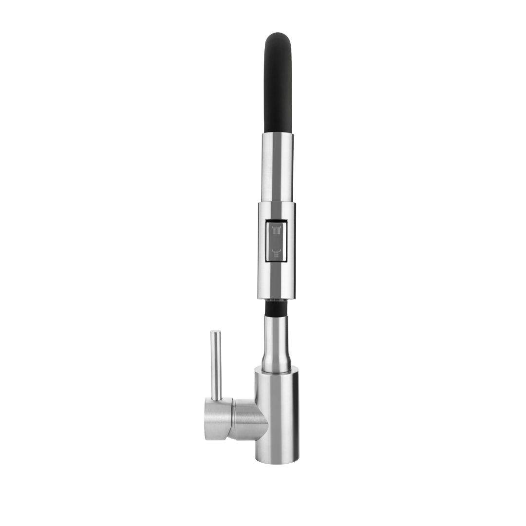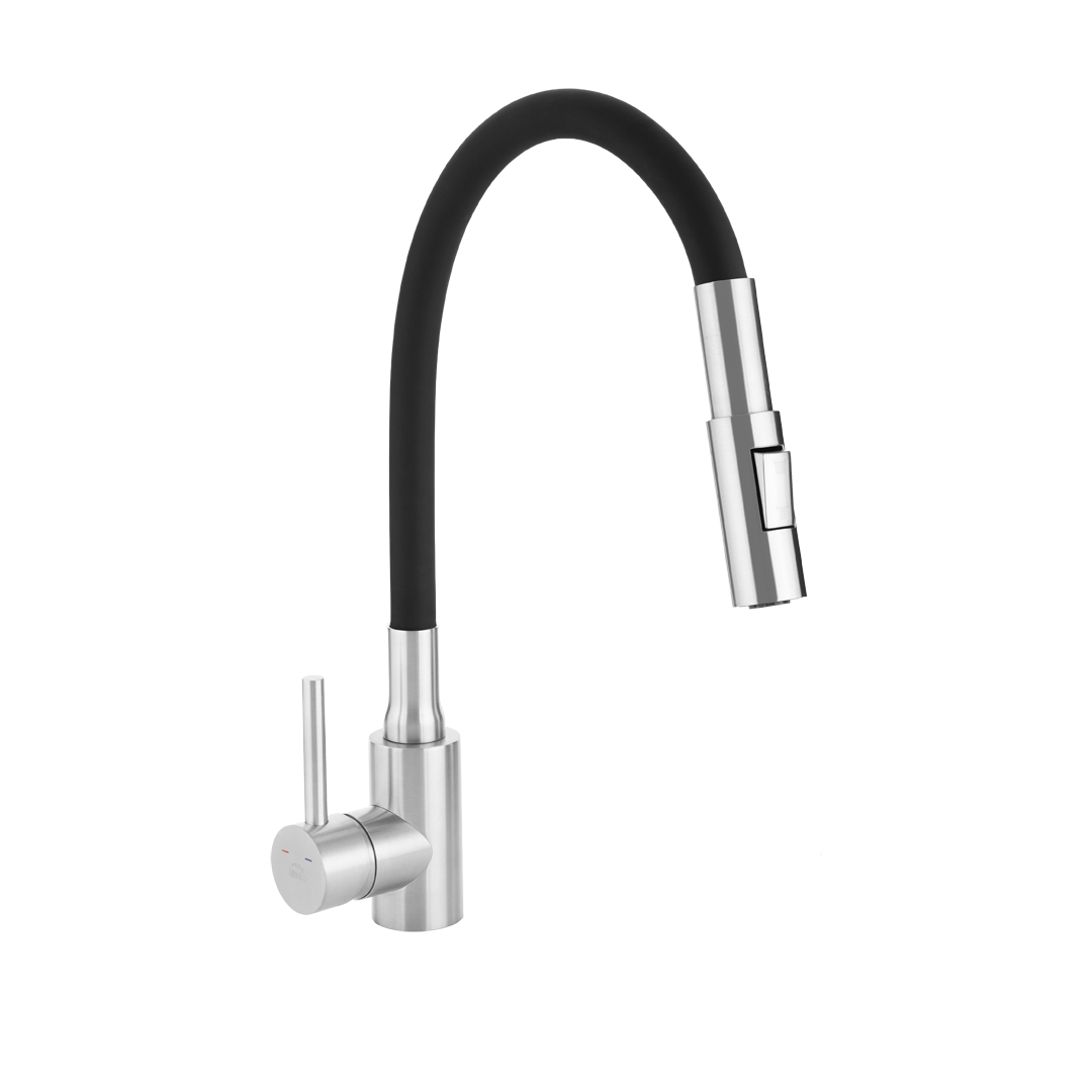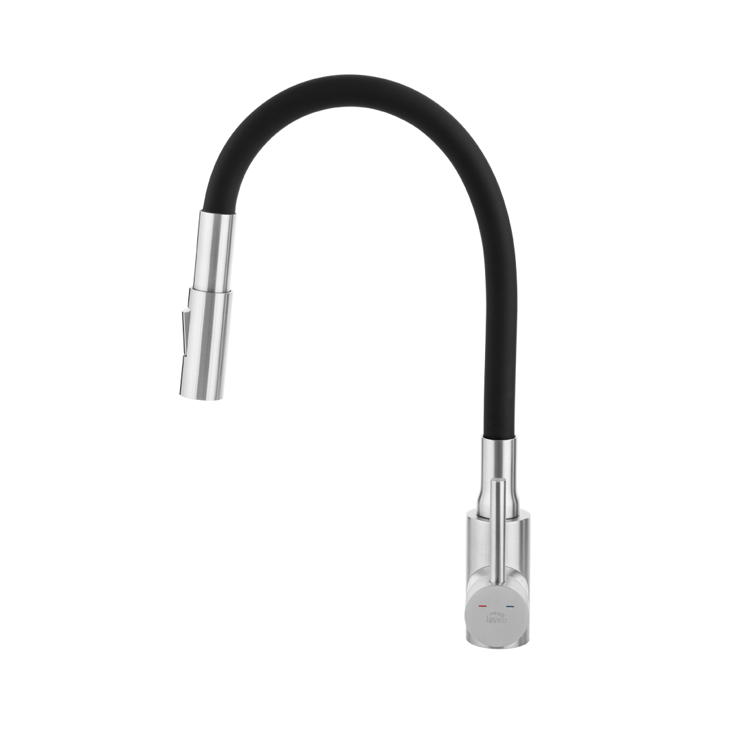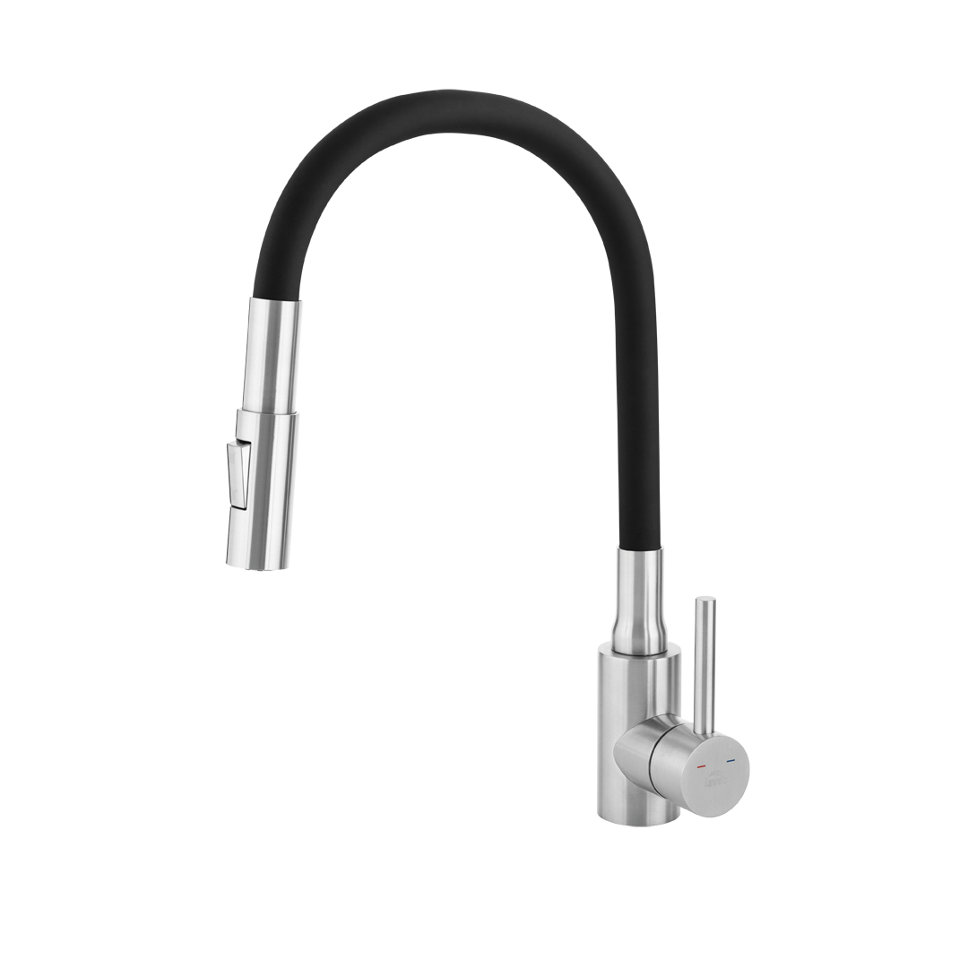 Bateria kuchenna Nila ze stali szczotkowanej z czarną wylewką to propozycja dla osób, które cenią połączenie nowoczesnego designu, trwałych materiałów i wygodnych rozwiązań w kuchni. Zestawienie szczotkowanego korpusu ze stali nierdzewnej z elastyczną, czarną wylewką nadaje baterii wyrazisty, elegancki charakter, który doskonale wpisuje się w kuchnie nowoczesne, loftowe i minimalistyczne. To model, który dobrze wygląda i ułatwia codzienne prace przy zlewie.