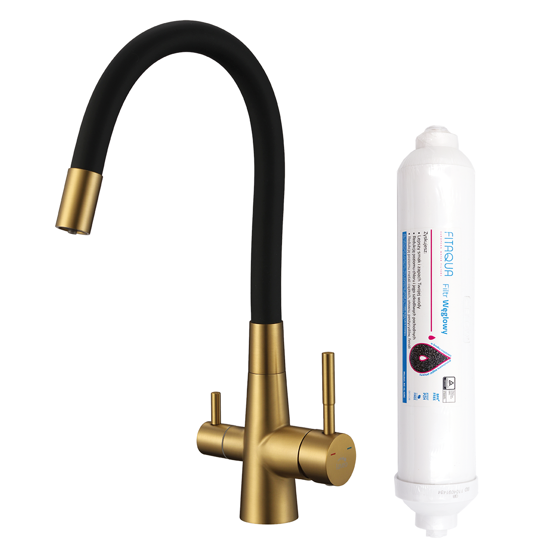 Design baterii Riveco wyróżnia się unikalnym zestawieniem szczotkowanego złota z matową czernią. To kontrastowe połączenie łączy w sobie ponadczasową elegancję z nowoczesnym, odważnym charakterem. Bateria świetnie prezentuje się zarówno w klasycznych, jak i minimalistycznych kuchniach – dodaje wnętrzu stylu i klasy.
