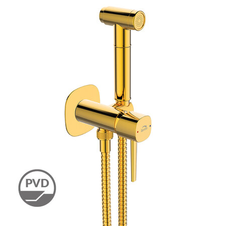 Złota podtynkowa bateria bidetowa Pola w żółtym odcieniu to propozycja do łazienek w stylu glamour. Błyszczące wykończenie w połączeniu z zaokrąglonym korpusem i płaską, wąską dźwignią dają subtelny i elegancki efekt. Zestaw natryskowy składający się z metalowej, trwałej słuchawki oraz długiego na 150 cm węża, którego duży zasięg zapewnia wygodne użytkowanie produktu. Zastosowany w wężu system antyskręt zapobiega jego plątaniu. Wygodnym, umieszczonym na szczycie słuchawki przyciskiem w łatwy sposób zamkniemy wypływ wody, minimalizując ryzyko rozchlapywania. Bateria oferuje rozproszony strumień deszczowy, który jest najczęściej wykorzystywanym rodzajem w łazience. Niska klasa przepływu ogranicza zużycie wody i wpływa na obniżenie wysokości bieżących rachunków.