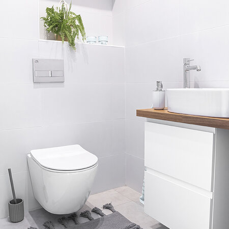 - ukryty montaż - zapewnia pełen kształt miski bez szpecących otworów montażowych czy plastikowych nakładek