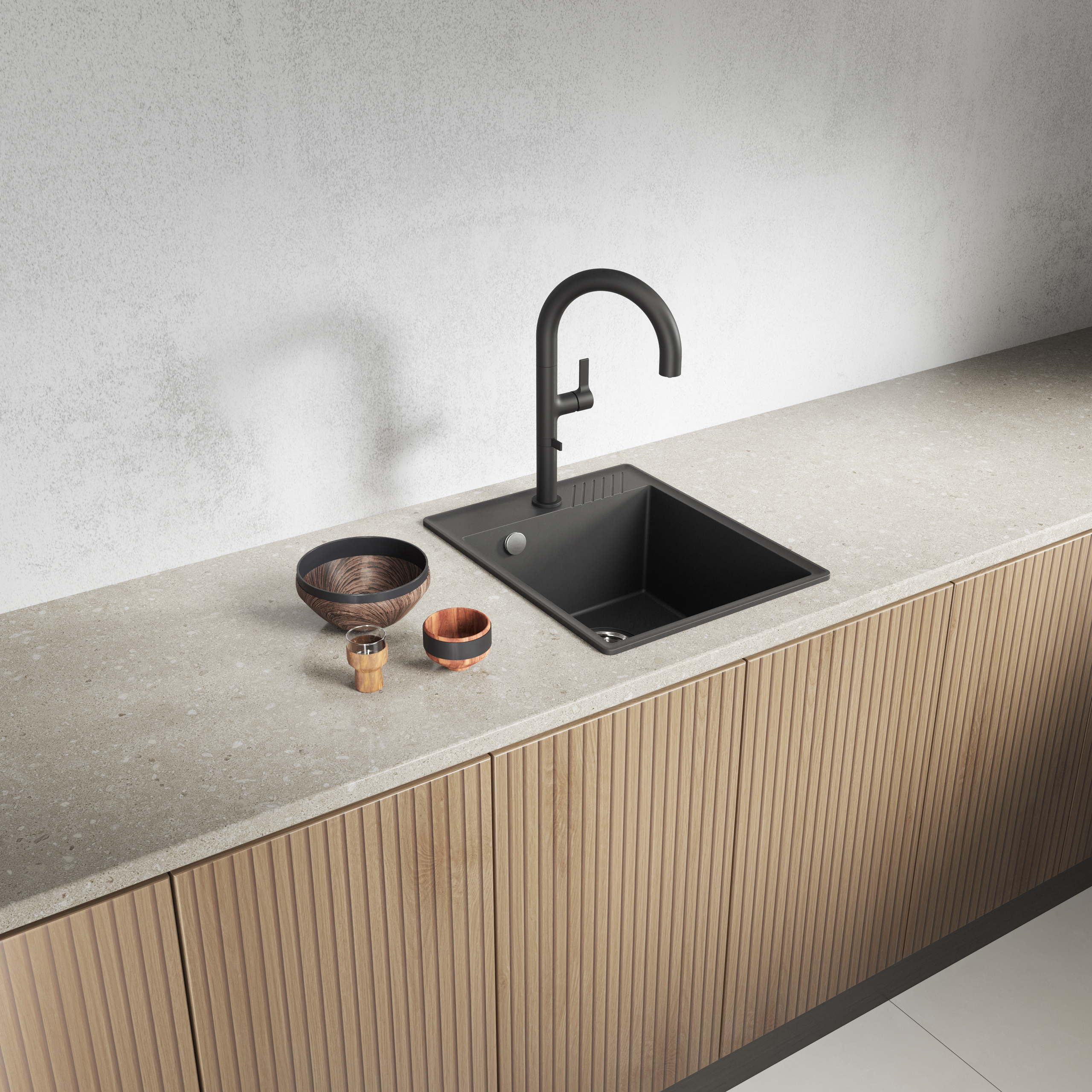 Zlewozmywak granitowy Hub czarny to rozwiązanie stworzone z myślą o nowoczesnych wnętrzach, w których liczy się funkcjonalność, estetyka i oszczędność miejsca. Kompaktowy format do szafki 40 cm, smukły rant 8 mm, podniesiona krawędź chroniąca blat oraz trwały granit sprawiają, że Hub staje się nie tylko praktycznym elementem wyposażenia kuchni, ale również jej spójnym, designerskim akcentem na lata.