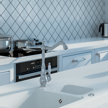 EVORA, o baterie de chiuvetă în formă de L, cu o singură priză, cu fața mobilă este o compoziție a modelului și o precizie a realizării. Permite spălarea comodă a vaselor, chiar și a celor de dimensiuni mari, și asigură ușurința utilizării în timpul lucrului zilnic în bucătărie. Finisajul învechit și forma neobișnuită a robinetului au fost sursa de inspirație pentru numele său, care provine de la un oraș antic din Portugalia. Seria EVORA este echipată cu un aerator NEOPERL care aerisește fluxul de apă, reducând astfel consumul acesteia. Bateriile sunt disponibile în patru variante de culoare: cromate, cupru, negru și cupru la modă.