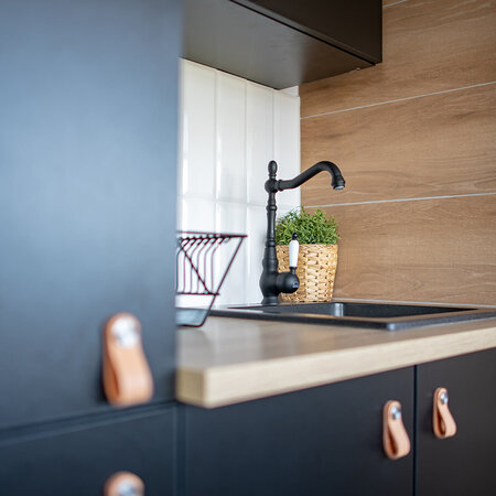 EVORA, o baterie de chiuvetă în formă de L, cu o singură priză, cu fața mobilă este o compoziție a modelului și o precizie a realizării. Permite spălarea comodă a vaselor, chiar și a celor de dimensiuni mari, și asigură ușurința utilizării în timpul lucrului zilnic în bucătărie. Finisajul învechit și forma neobișnuită a robinetului au fost sursa de inspirație pentru numele său, care provine de la un oraș antic din Portugalia. Seria EVORA este echipată cu un aerator NEOPERL care aerisește fluxul de apă, reducând astfel consumul acesteia. Bateriile sunt disponibile în patru variante de culoare: cromate, cupru, negru și cupru la modă.