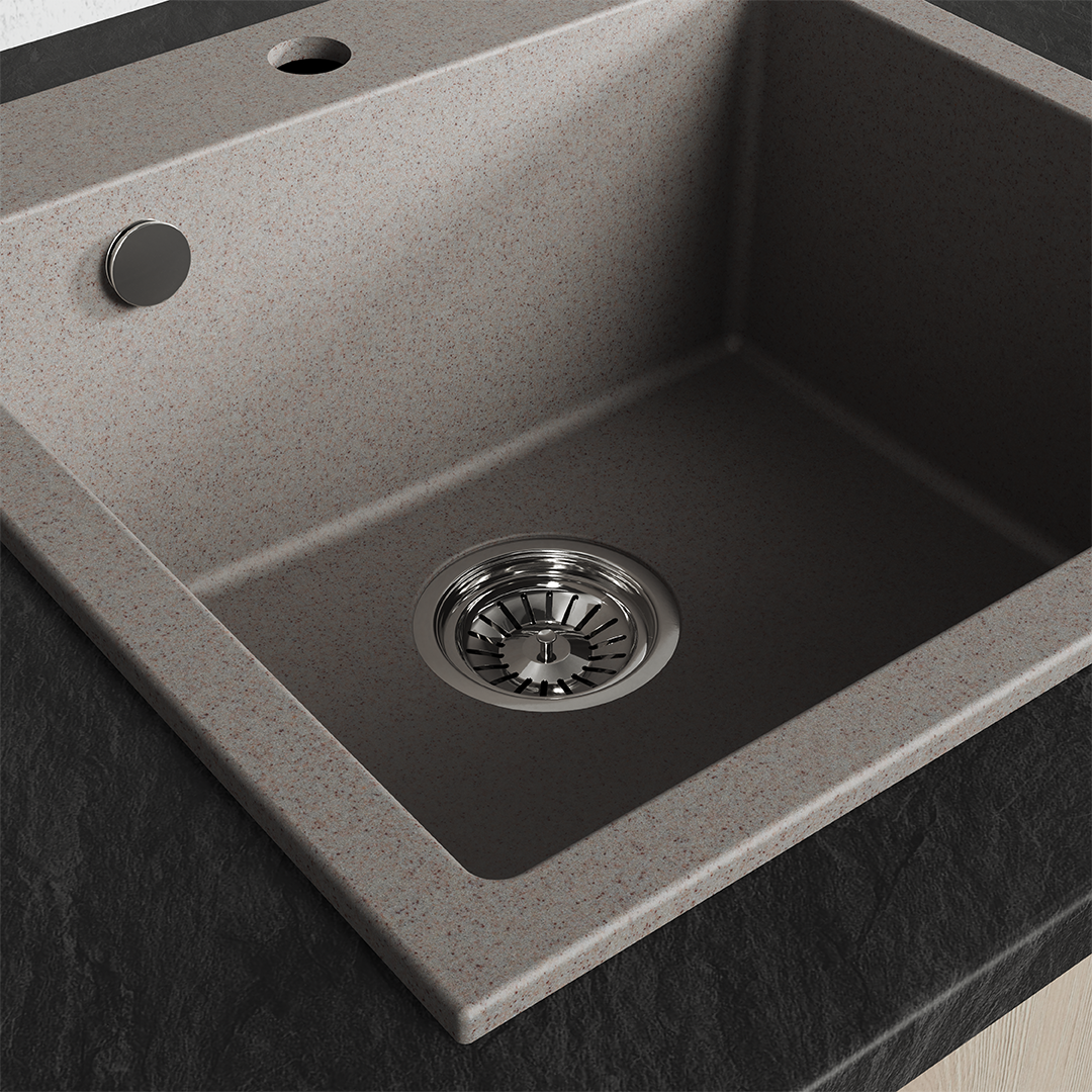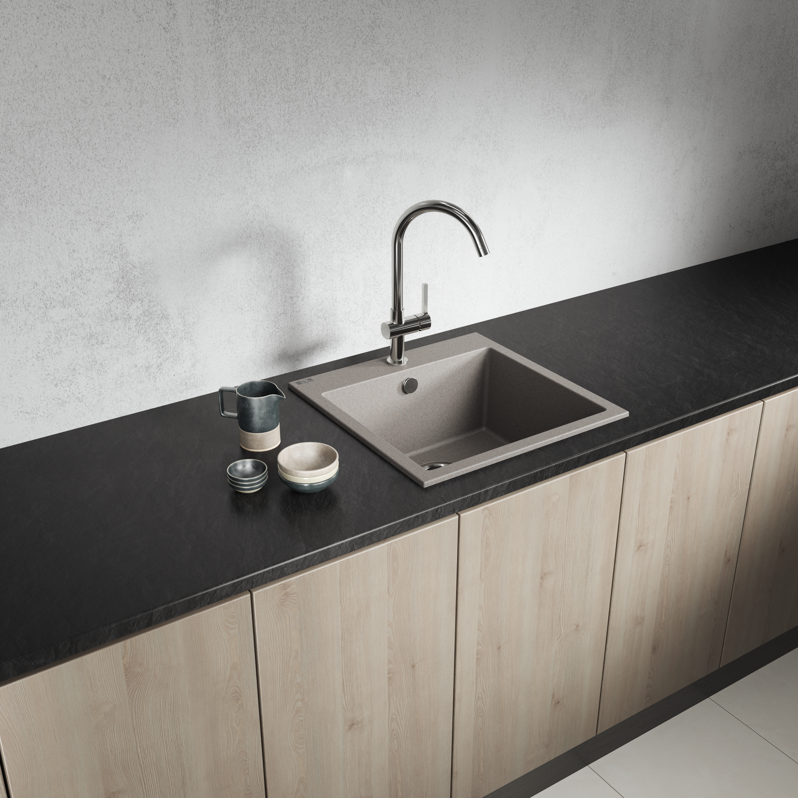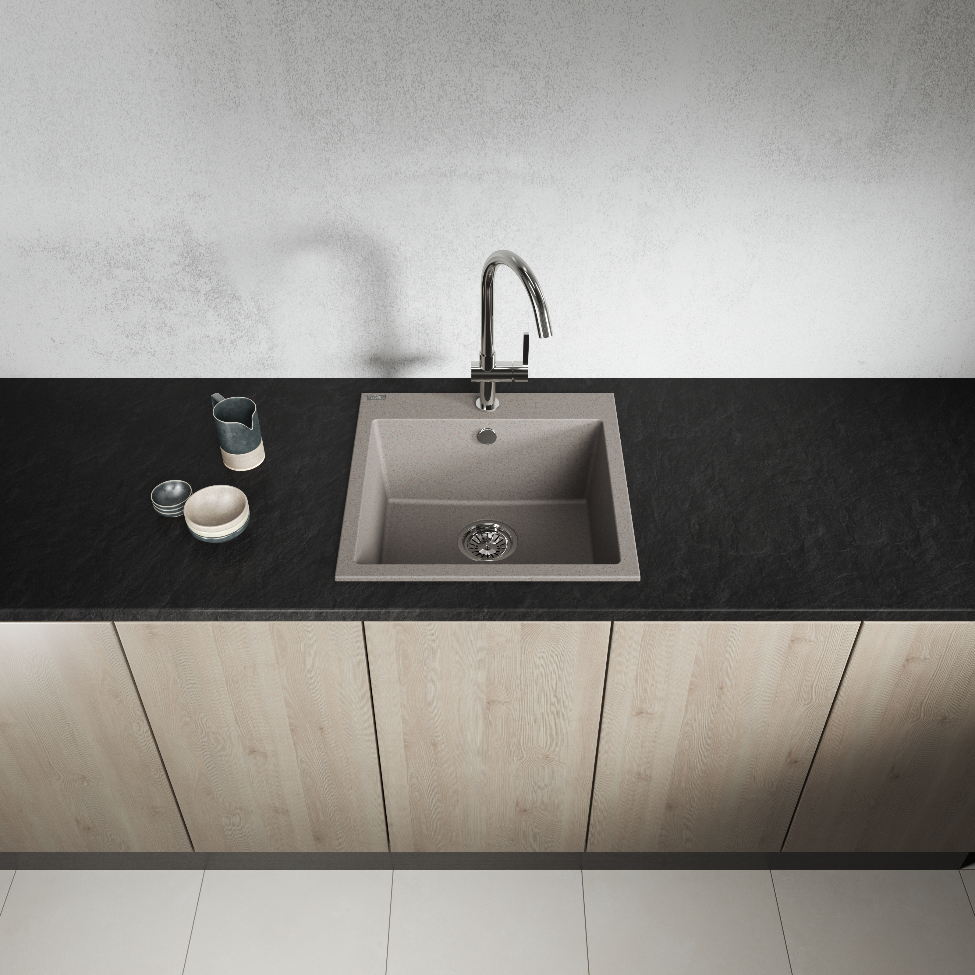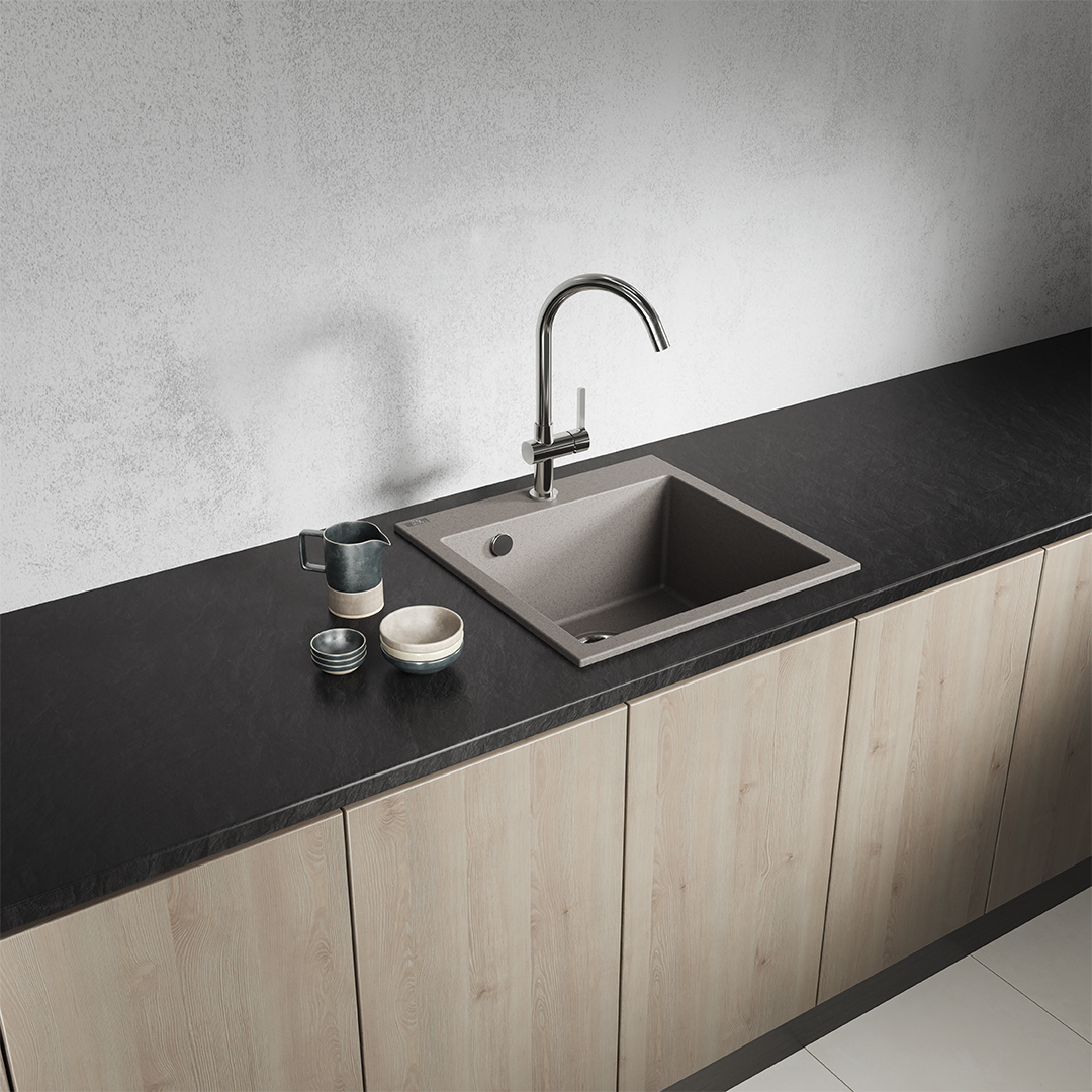 ALENA este o chiuvetă din granit destinată pentru spații mici de bucătărie. Forma simplă face ca aceasta să fie universală și în combinație cu robinetul corespunzător se va potrivi perfect în orice tip de interior. Compartimentul mic, dar adânc de 20 cm, o face pe deplin funcțională. Modelul este echipat cu sifon de economisire a spațiului în dulap – tip SPACE SAVING, facilitând astfel organizarea spațiului pentru sistemele de separare a deșeurilor. Setul include și o mufă click-clack. Proprietățile materialului din care este fabricată garantează rezistența la murdărie, zgârieturi, șoc termic și temperatură ridicată. Chiuveta a fost proiectată de Maria Kubiak și este produsă într-o fabrică poloneză.