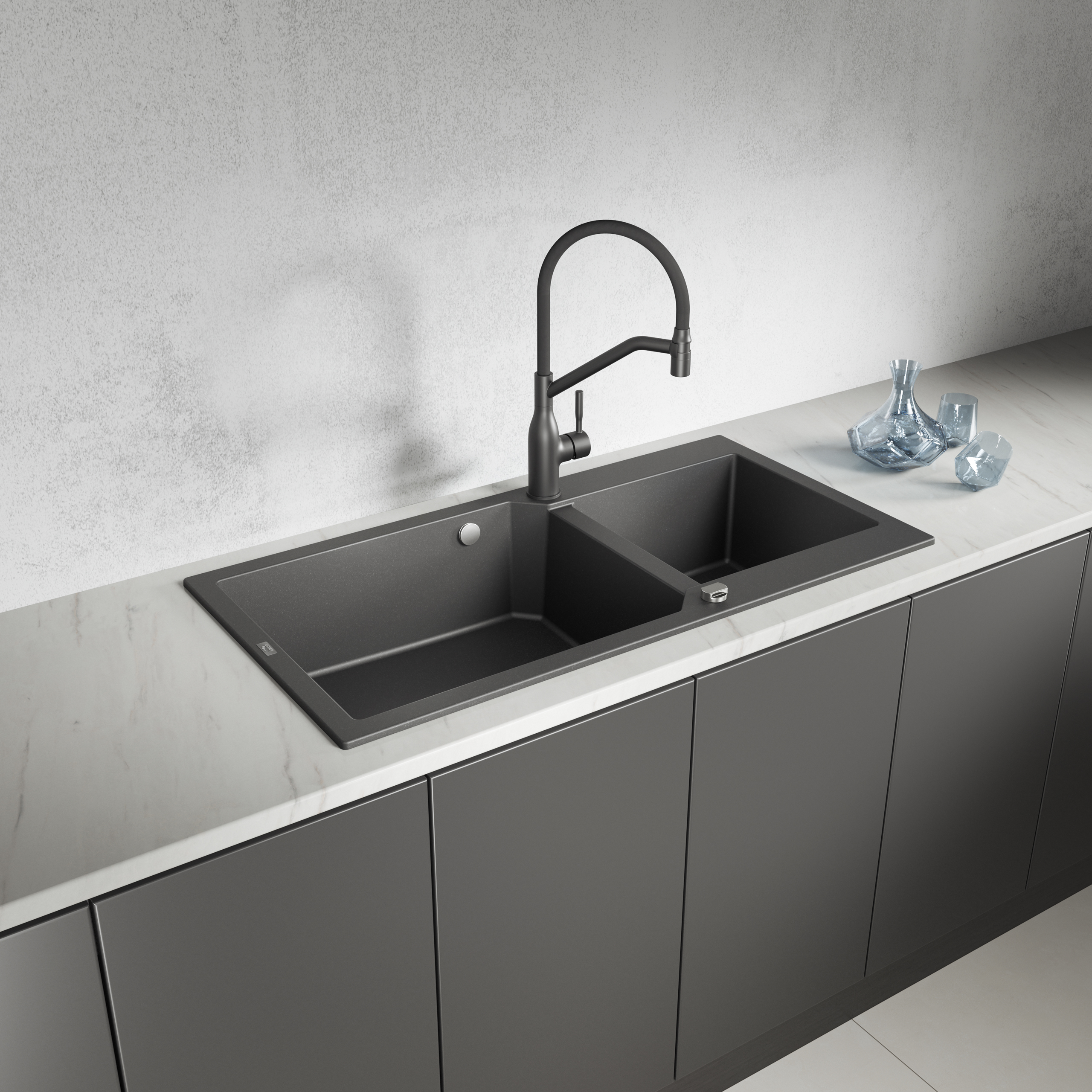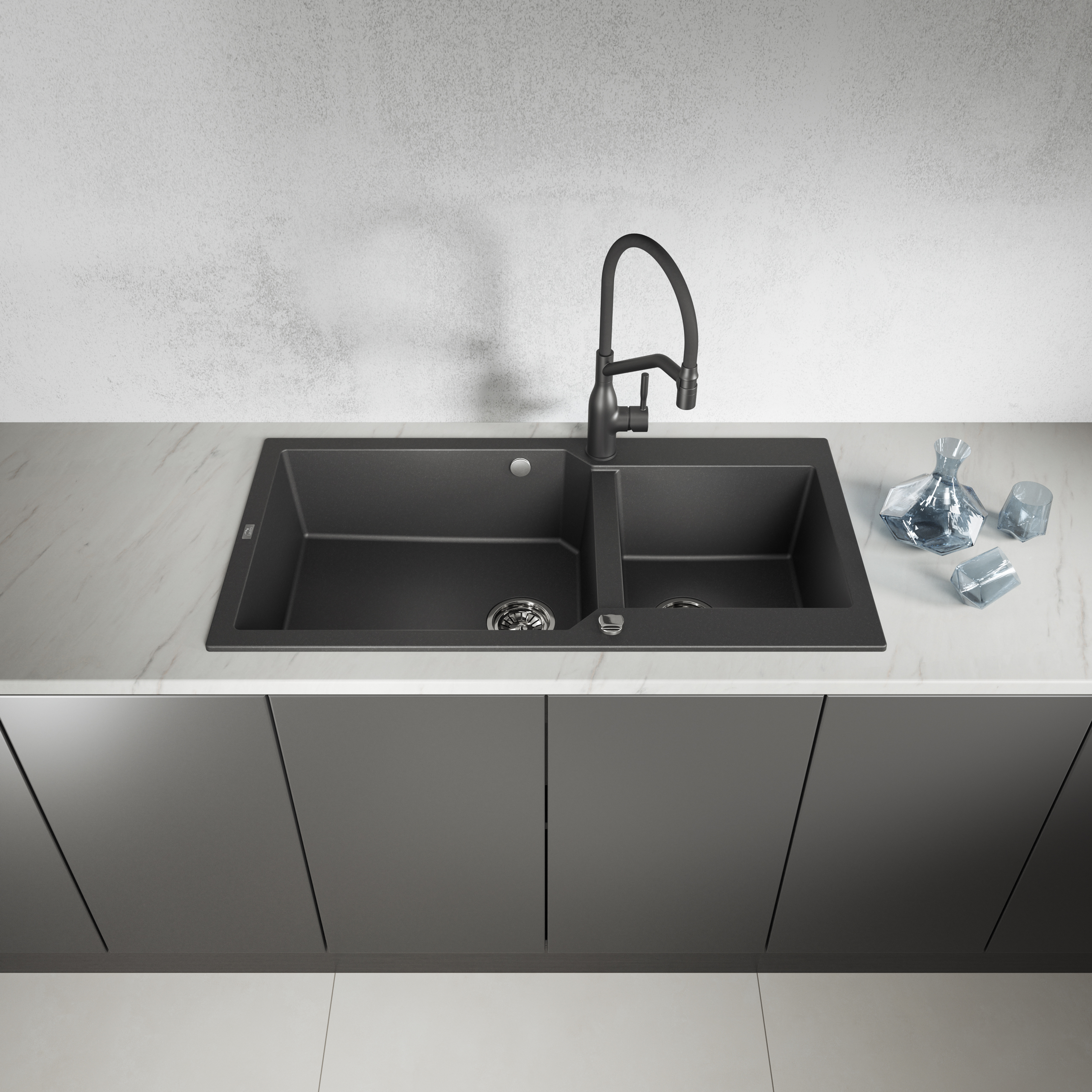 Seria de chiuvete din granit Milos este soluția perfectă pentru bucătăria modernă, combinând eleganța cu funcționalitatea excepțională. Modelele din această gamă oferă două cuve adânci, dintre care una este ideală pentru spălarea oalelor mari și a tăvilor de copt, în timp ce cuva mai mică este perfectă pentru clătirea legumelor sau a fructelor. Ca rezultat, chiuvetele Milos oferă confort și eficiență în timpul activităților zilnice din bucătărie. Sifonul utilizat, care economisește spațiul, permite o mai bună utilizare a spațiului de sub chiuvetă, ceea ce este important pentru organizarea bucătăriei.