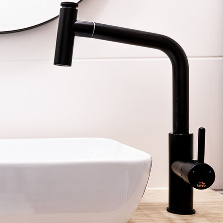 Смеситель для мойки TORO - оригинальная модель, разработанная для современных кухонь. Характерный конец излива- помимо декоративных преимуществ, скрывает удобный переключатель струи воды с постоянной на „дождь”, что особенно удобно при ополаскивании овощей и фруктов. Выдвижной излив повышает комфорт повседневной деятельности. Смеситель доступен в двух вариантах отделки: хром и черный.