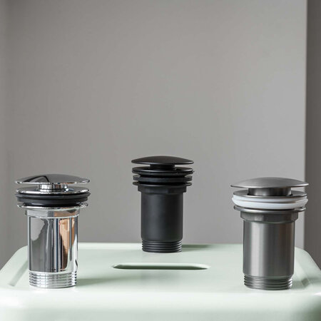 Пробки Click-clack, работающие по принципу пружины, - это удобное и эстетичное решение, позволяющее закрывать и открывать слив воды в раковине. Они изготовлены из прочной латуни, что гарантирует их долгую работу. Пробки - минималистичный декоративный элемент ванной комнаты. Они доступны в трех основных вариантах отделки: хром, графит и черный, что позволяет подобрать пробку к вашей сантехнике и создать гармоничное целое.