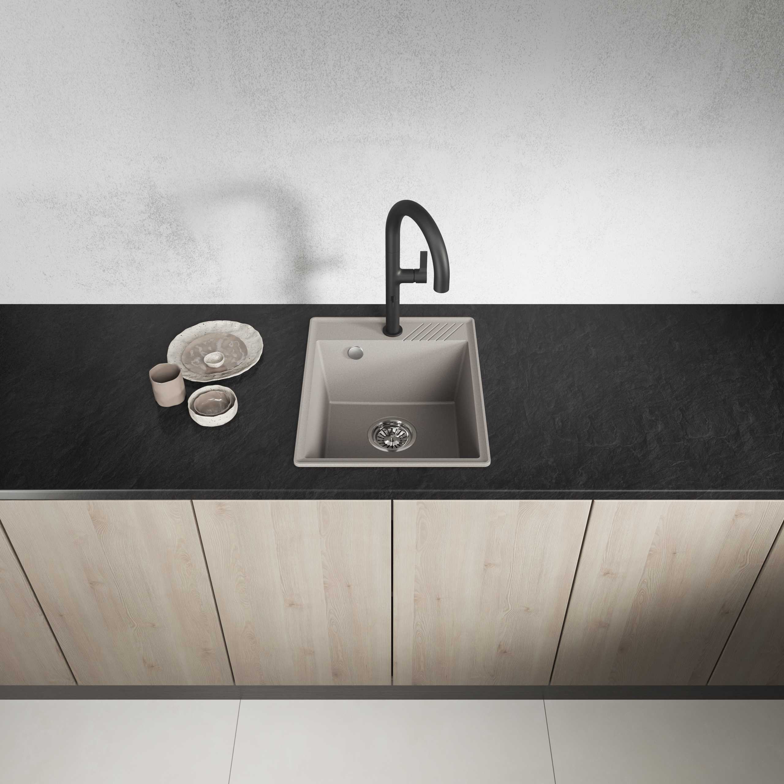 Серия гранитных кухонных моек Hub создана для современных кухонь, где важны функциональность и экономия пространства. Компактный формат, подходящий для шкафов шириной 40 см, делает мойки идеальным решением для небольших кухонь и кухонных ниш.