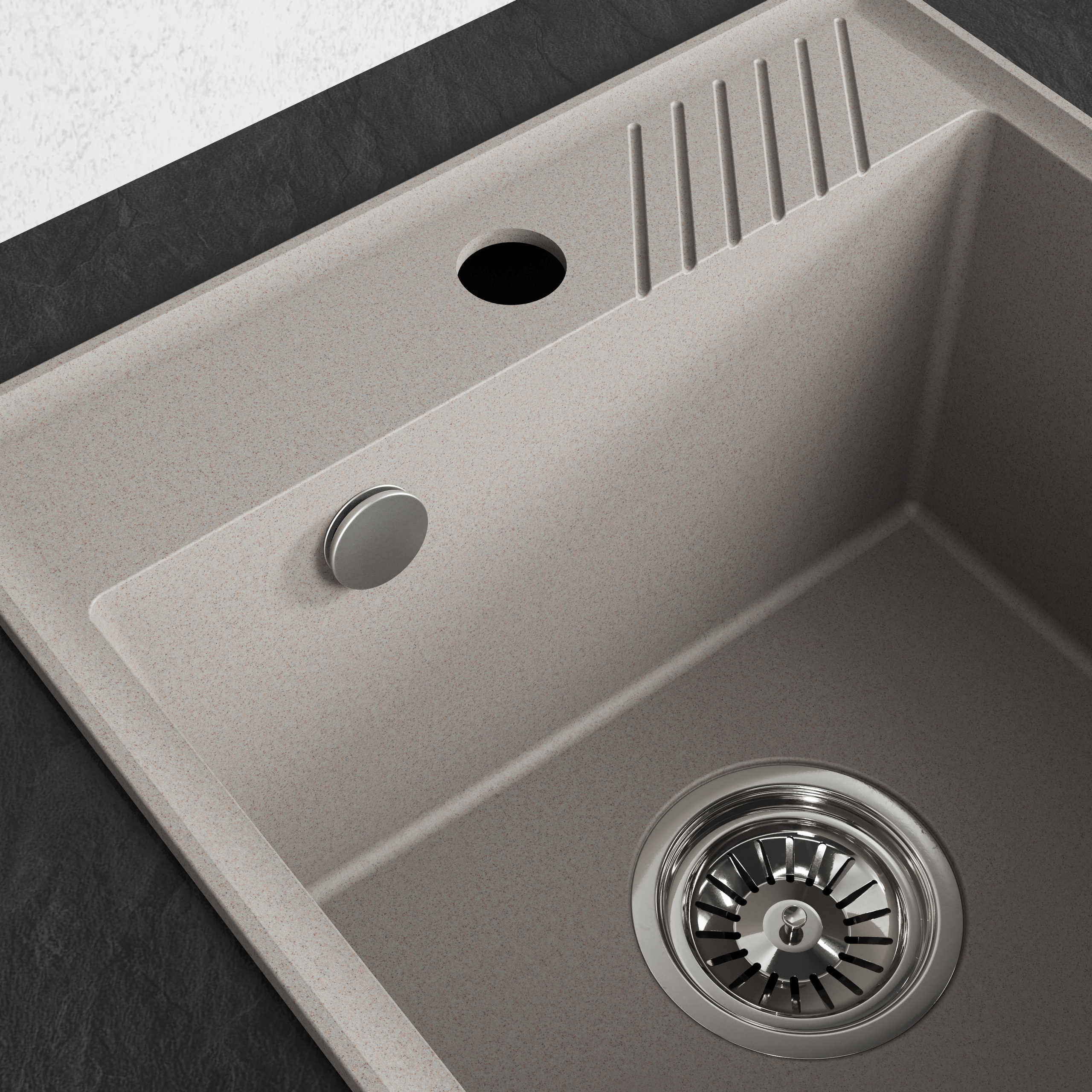 Тонкий бортик высотой 8 мм придаёт мойке лёгкий, современный вид и эффективно защищает столешницу от брызг. Вместительная чаша и продуманные пропорции обеспечивают комфорт в ежедневном использовании.