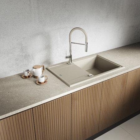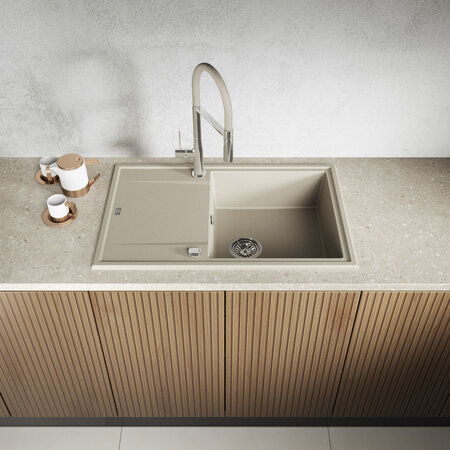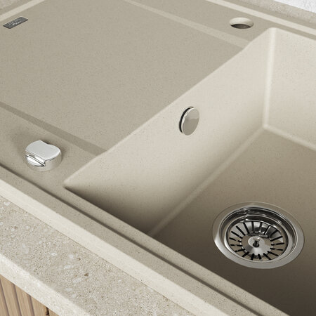 Серия MEGALO – это предложение для любителей массивных кухонных моек. Разработанная и изготовленная в Польше раковина - это простая, современная форма. Идеально плоское крыло с сушкой облегчает поддерживание чистоты и уменьшает риск возникновения неприглядных пятен от воды. Двадцатимиллиметровый боковой край, окружающий всю мойку, предотвращает протечку воды, тем самым защищая кухонную столешницу. MEGALO доступен в трех цветовых вариантах: бежевом, сером и черном. Он продается в комплекте с автоматической пробкой и сифоном для экономии места в шкафу Space Saving.