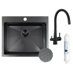 Мойки Malawi можно устанавливать как сверху, так и вровень со столешницей. Серия включает комплекты с дозатором для моющего средства, складной сушилкой, вставкой для ополаскивания фруктов и другими удобными аксессуарами. В наборах также доступен кухонный смеситель Riveco с угольным фильтром, обеспечивающий чистую питьевую воду без использования пластиковых бутылок. Смеситель с двойной ручкой позволяет легко переключаться между фильтрованной и нефильтрованной водой.
