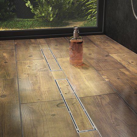 Во-первых, душ как источник экономии в широком смысле. Средний расход воды при использовании этой формы банных процедур намного меньше, чем при принятии ванны. Кроме того, мы получаем свободное пространство. Возможно ли дальнейшее уменьшение занимаемого пространства и количества используемых материалов? Конечно. У нас может возникнуть соблазн отказаться от традиционного душа путём использования линейного водостока. При этом устраняется необходимость в кабине. Пусть даже самое незначительное, и всё же это ограничение свободы для пользователей. Если вместо прямоугольной, мы бы выбрали полукруглую, есть шанс на немного больше пространства, но его расширение может быть достигнуто в ущерб удобству. Если мы заботимся о комфорте, то давайте используем стену комнаты как часть душа. Давайте установим прозрачную боковую стенку. Мы отказываемся от плескательного бассейна. Скромный водосток, установленный непосредственно на полу, позволяет отделать пол в душе однородной керамической плиткой, которая используется во всей ванной комнате.