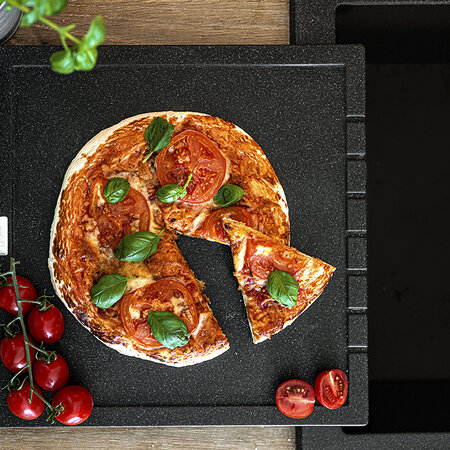 Сушилка обладает всеми прочностными свойствами гранитных моек: устойчивость к изменению цвета, царапинам, ударам, высокой температуре и термоударам. Гладкая поверхность, канавки для отвода воды и бортик, препятствующий попаданию воды на кухонную столешницу, облегчают очистку сушилки и поддерживают чистоту в зоне мытья. Для ухода и очистки мы используем те же препараты, что и для гранитных моек.