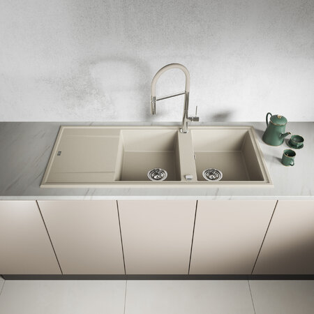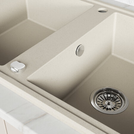 Серия MEGALO – это предложение для любителей массивных кухонных моек. Разработанная и изготовленная в Польше раковина - это простая, современная форма. Идеально плоское крыло с сушкой облегчает поддерживание чистоты и уменьшает риск возникновения неприглядных пятен от воды. Двадцатимиллиметровый боковой край, окружающий всю мойку, предотвращает протечку воды, тем самым защищая кухонную столешницу. MEGALO доступен в трех цветовых вариантах: бежевом, сером и черном. Он продается в комплекте с автоматической пробкой и сифоном для экономии места в шкафу Space Saving. Мойки Dafne - это польский продукт, произведенный на нашем собственном заводе.