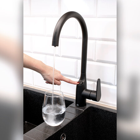Модель кухонных смесителей с подключением к фильтру для воды. Благодаря кнопке, расположенной на корпусе смесителя, мы можем пить фильтрованную воду прямо из-под крана. В комплект смесителя Carlo входит дополнительный третий шланг, который подключается к фильтру, установленному под мойкой. Установка выполняется быстро и легко, а сам фильтр подлежит рециклингу. Доступные на рынке фильтры позволяют вам адаптировать их в соответствии с вашими потребностями и качеством воды в вашей домашней системе водоснабжения. Мы можем наслаждаться фильтрованной водой в течение 6 месяцев, прежде чем потребуется замена фильтра. Такой срок позволит сэкономить на покупке бутилированной воды и поспособствует снижению использования пластика. Подключив фильтр, вы получите свежую воду, свободную от бактерий, вирусов, песка, ила, ржавчины и взвешенных частиц – в зависимости от выбранной модели и вида фильтра. Для мытья посуды или пищевых продуктов или уборки на кухне мы используем нефильтрованную воду, струя которой выходит из смесителя каждый раз при повороте рычага (струя фильтрованной воды активируется кнопкой, поэтому мы не используем встроенный фильтр без необходимости). Находящийся в смесителе U-образный излив с вращением на 360° обеспечивает широкий диапазон движений. Смеситель доступен в двух цветовых вариантах: классический хром и топовый черный.