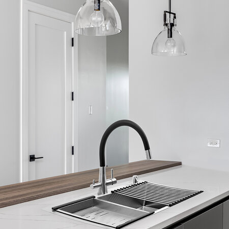 Смесители Riveco выделяются элегантными, современными отделками в цветах: нержавеющая сталь, черный и графитовый, которые органично вписываются в различные кухонные интерьеры. Эти эстетичные и долговечные покрытия не только украшают кухню, но и гарантируют долговечность, легкость в обслуживании и стойкость к повреждениям.