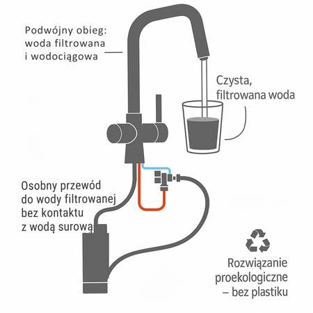 В линейке представлены два модели: смеситель с возможностью подключения к фильтру для воды и смеситель с встроенной системой фильтрации Amii. Первая модель позволяет напрямую подключить фильтр, что устраняет необходимость в покупке бутилированной воды, что экономит деньги и снижает количество пластиковых отходов. Вторая модель с интегрированной системой фильтрации Amii эффективно очищает воду от хлора, тяжелых металлов и других загрязнителей, обеспечивая высококачественную чистую воду, подходящую для питья.