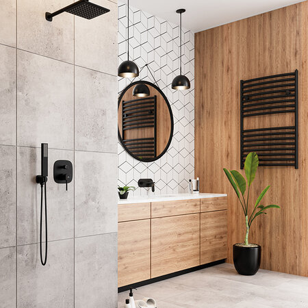 Pola ist eine bequeme und minimalistische Ausstattung der Duschkabine für Personen, die nach einer idealen Lösung suchen. Die in vier farblichen Varianten erhältlichen Duschköpfe verfügen über einen Regenstrahl. Die Brausen sind mit einem Anti-Kalk-System ausgestattet. Das sind die Silikonlamellen, die die Reinigung erleichtern. Das Ganze ergänzt das Reiche Angebor an Farbausführungen, d.h. Chrom, Schwarz, Rosé Gold und gelbes Gold. Unter den Modellen kann man auch einen Duschkopf, ein Brauseset mit Wandhalter und ein Brauseset mit Duschstange oder ein Unterputz-Set finden. Dieses letztere ist für die Unterputzmontage zusammen mit solchen Elementen wie: Kopfbrause, Wasserhahn, Brauseanschlussbogen, Duschschlauch und Duschkopf bestimmt. Die Unterputz-Armatur hat in ihrem Set eine Box (das ist nämlich die einfachste Lösung, wenn es um die Montage und spätere Wartung geht. Die Box besteht aus zwei Teilen: einem Armaturkörper aus Messing, der sich in einer Abdeckung befindet, die in der Wand installiert ist und Außenelementen (Rosetten und Hebelgriffen/Drehreglern), die an den Wandfliesen sichtbar sind).