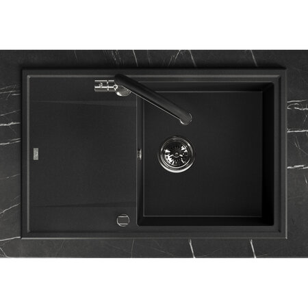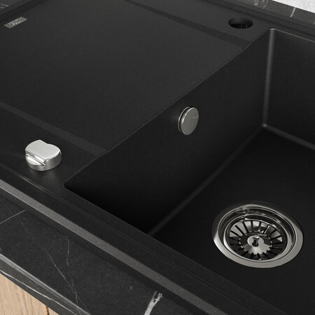 Die Serie MEGALO ist ein Vorschlag für die Liebhaber der modernen Spülen-Formen. Die in Polen entwickelte und hergestellte Spüle hat eine schlichte, schlanke Linie. Die ideal flache Ablaufplatte erleichtert die Erhaltung der Sauberkeit und minimiert das Risiko der Entstehung unästhetischer Wasserflecken. Der 20 mm breite Rand, der die gesamte Spüle umfasst, verhindert das Verspritzen des Wassers und schützt damit die Küchenarbeitsplatte. MEGALO ist in drei Ausführungen erhältlich: Beige, Grau und Schwarz. Es wird im Set mit einem automatischen Stöpsel und einem Siphon Space Saving, der für Platzeinsparung im Schrank sorgt, verkauft.