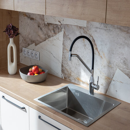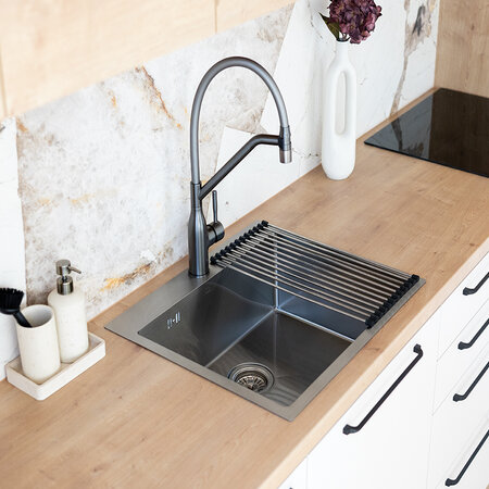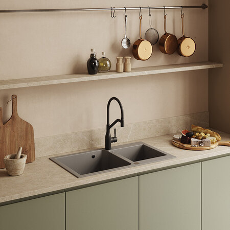 Die Colina-Armaturen sind in drei der modischsten Farbvarianten erhältlich, die sich harmonisch in verschiedene Einrichtungsstile integrieren. Die Kombination aus Chrom und Schwarz ist eine elegante und zeitlose Wahl für Liebhaber von Kontrasten – das glänzende Chrom verleiht dem Raum Frische, während das matte Schwarz den modernen Charakter der Küche unterstreicht. Für diejenigen, die klassische Modernität schätzen, ist die einheitliche matte schwarze Variante die ideale Lösung – minimalistisch, stilvoll und perfekt für Loft-, Skandi- und industrielle Einrichtungsstile. Das graue Finish hingegen zeichnet sich durch eine subtile metallische Struktur aus, die der Küche eine raffinierte Note verleiht und ideal mit Betonarbeitsplatten, Holzoberflächen und matten Möbeloberflächen harmoniert.