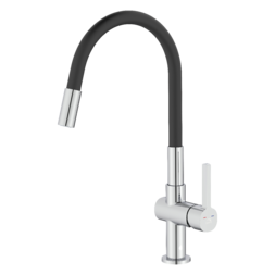 Alita kitchen mixers offer two water flow modes – stream and rain – providing comfort and efficiency for everyday use. Versions with a movable U-shaped spout and models with a flexible spout combine ergonomics with modern style. The flexible variants are available in three color combinations: chrome/black, black, and brushed nickel/black, making them easy to match with a variety of kitchen arrangements.
