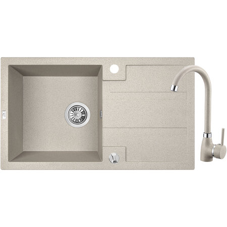 Simple and expressive - that is what the Barbados series of sinks is like. The series consists of 4 models. The 1,5-bowl sink with a drainer, whose dimensions are 48x100 cm, is the largest proposal that can be found among the series. There is also a 2-bowl sink, 1-bowl with a halfdrainer and a 1-bowl model with a drainer (44x76 cm), which is the smallest product offered by the collection. The latter is also available in a set with a kitchen faucet that has been color-coordinated to match the finish of the sink. The Barbados series is available in three colors: beige, gray, and black. While choosing one of the three models, it is worth noticing that thanks to the Space Saving drain trap, we will save space in the cabinet under the sink. Moreover, due to the automatic pop-up waste plug, we are able to easily close or open the outflow, while the reversibility of each model enables the installation of the sink with a drainer both on the left and right sides.