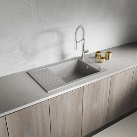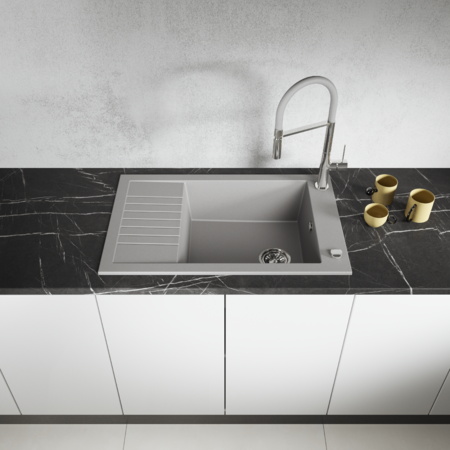 This innovative kitchen sink will attract attention with its elegance and comfort of use. Simple shapes and ideal proportions will fit into a kitchen island. The faucet hole has been placed on the side of the bowl and not between the bowl and the drainer, which maximizes the working area. The sink with dimensions of 50x78 cm is suitable for a 60 cm kitchen cabinet. It is also reversible so that the choice of whether to install the sink on the left or the right side belongs to us. Moreover, the product has a large bowl with a diagonal of 61 cm, which enables washing up big pots or an oven tray. Laveo sinks are of Polish quality, which means Polish production, in which we focus on adapting the products to the needs, thanks to their durability and ease of cleaning.