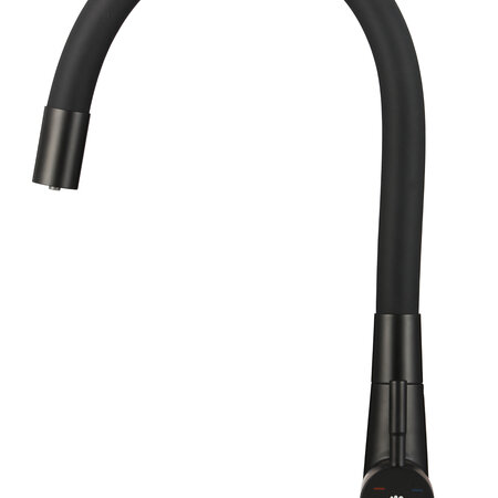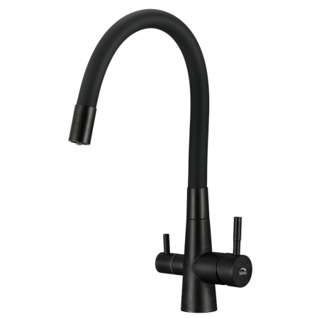 Czarna powierzchnia baterii świetnie komponuje się z różnymi kolorami i materiałami, idealnie pasując do kuchni w stylu industrialnym, nowoczesnym czy minimalistycznym. Czarny wykończenie nadaje baterii subtelnej elegancji, a matowa powierzchnia jest łatwa do utrzymania w czystości, co sprawia, że bateria wygląda dobrze przez wiele lat.